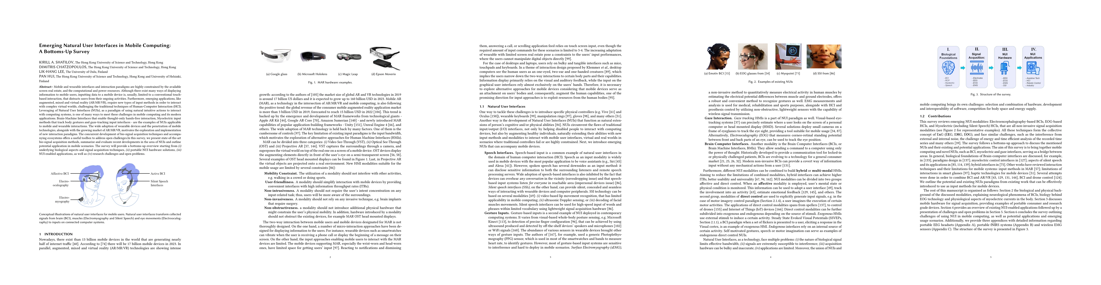 This survey explores emerging Natural User Interfaces (NUIs) in mobile computing, focusing on bio-signal acquisition techniques and their application in mobile and wearable devices. It examines NUIs like brain-machine interfaces and gesture tracking, highlighting their potential to enhance interaction in AR/MR/VR applications.