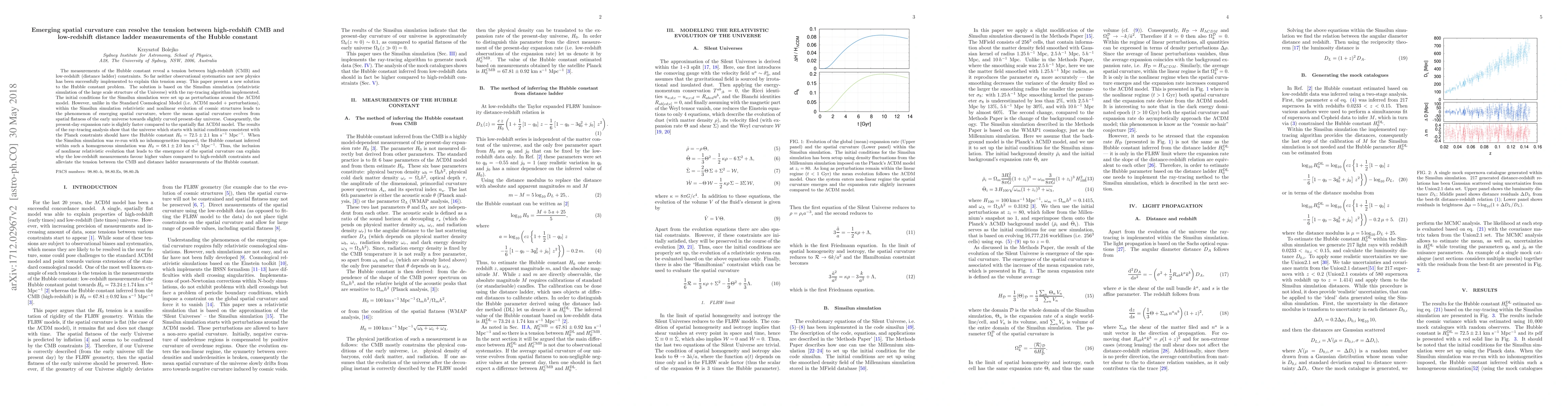 This paper proposes that emerging spatial curvature from the relativistic evolution of cosmic structures can resolve the tension between high-redshift CMB and low-redshift distance ladder measurements of the Hubble constant. The Simsilun simulation, which includes nonlinear effects, predicts a higher Hubble constant $H_0 = 72.5 \pm 2.1$ km s$^{-1}$ Mpc$^{-1}$, aligning with low-redshift measurements.