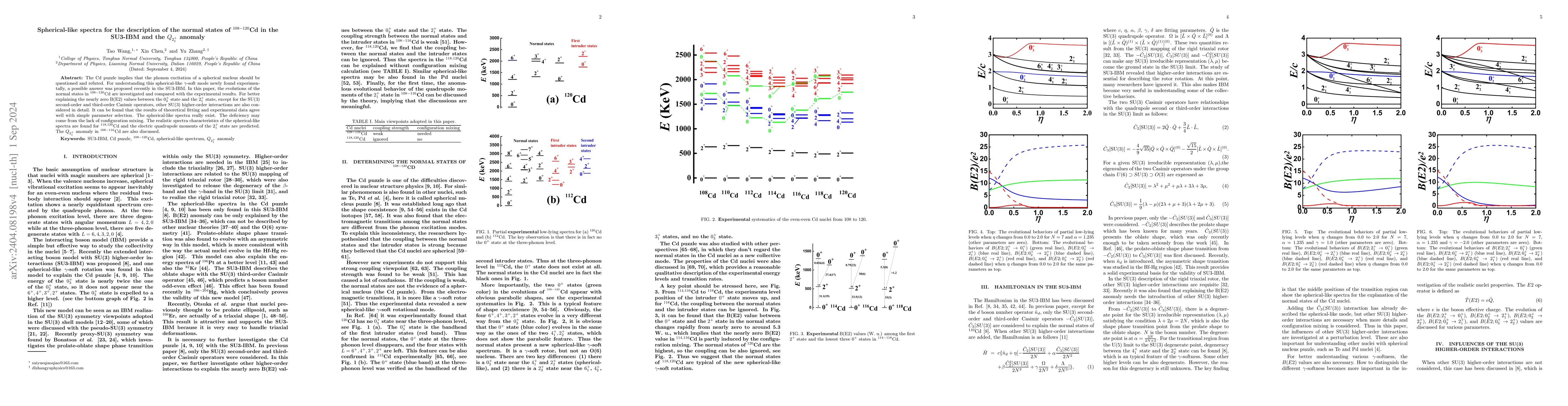 Spherical nucleus puzzle implies that the phonon excitation of a spherical shape should be questioned and refuted. For understanding this spherical-like $\gamma$-soft mode newly found experimentally, a possible answer was proposed recently in the SU3-IBM. In this paper, the evolutions of the normal states in $^{108-120}$Cd are investigated and compared with the experimental results. For better explaining the nearly zero B(E2) values between the $0_{2}^{+}$ state and the $2_{1}^{+}$ state, except for the SU(3) second-order and third-order Casimir operators, other SU(3) higher-order interactions are also considered in detail. It can be found that the results of theoretical fitting and experimental data agree well under very simple parameter selection. The spherical-like spectra really exist. The deficiency may come from the lack of configuration mixing. The realistic spectra characteristics are found and it predicts the electric quadrupole moment of the $2_{1}^{+}$ state for $^{118,120}$Cd.
