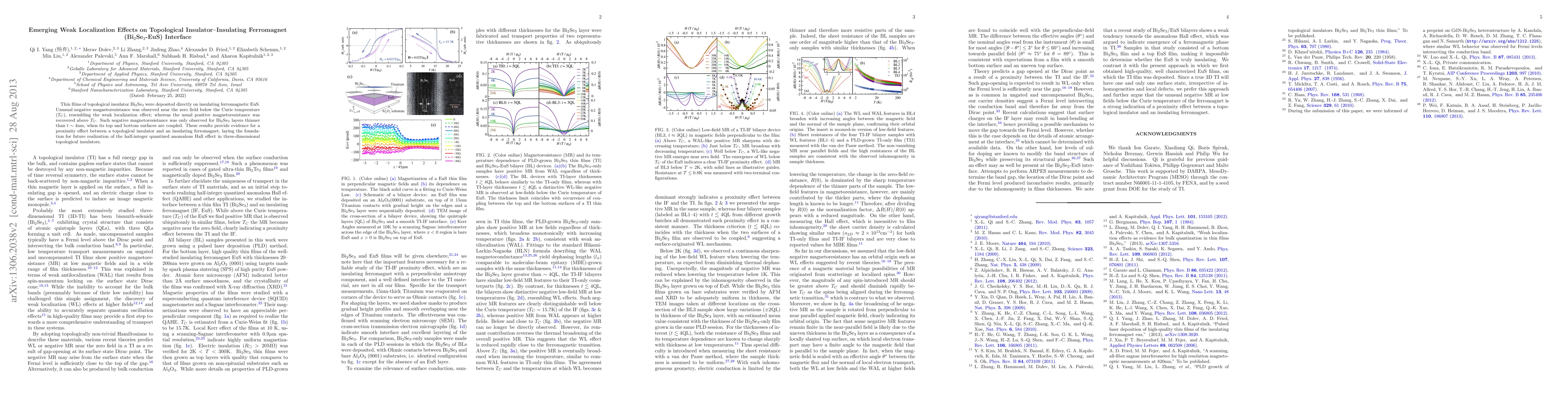 This study investigates thin films of topological insulator Bi_2Se_3 on insulating ferromagnetic EuS, revealing unusual negative magnetoresistance near zero field below the Curie temperature, indicative of weak localization effects. This effect is observed only in thin Bi_2Se_3 layers, suggesting a proximity effect that could enable the half-integer quantized anomalous Hall effect.