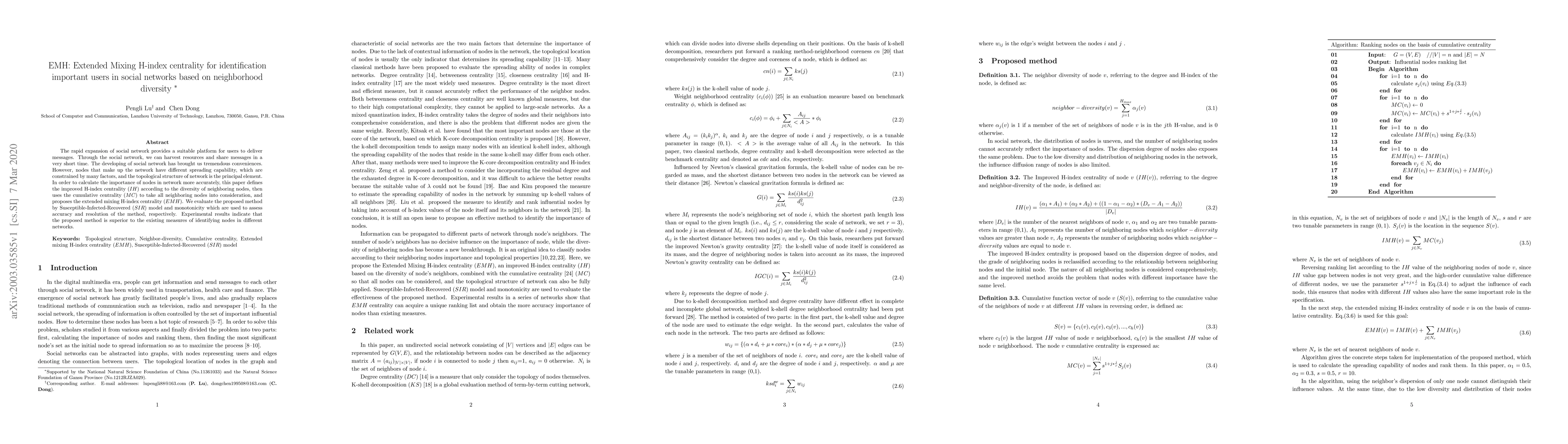 This paper proposes a new method called Extended Mixing H-index Centrality (EMH) to identify important users in social networks based on neighborhood diversity, which outperforms existing measures in different networks.