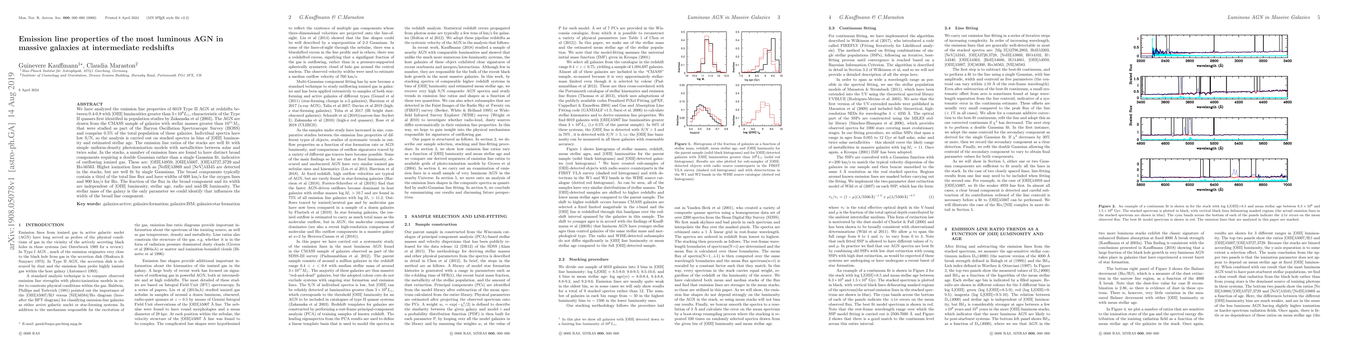 This study analyzes emission line properties of 6019 Type II AGN in massive galaxies at intermediate redshifts, finding evidence of outflowing ionized gas with distinct broad components, while stellar mass influences the width of these components.