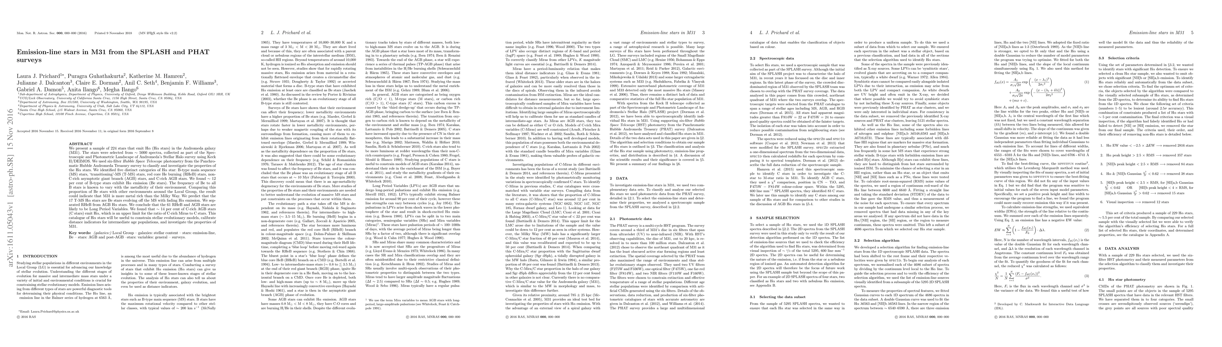Researchers discovered 224 emission-line stars in the Andromeda galaxy M31, categorizing them into distinct types, which could indicate that M31 is more metal-rich than the Milky Way.