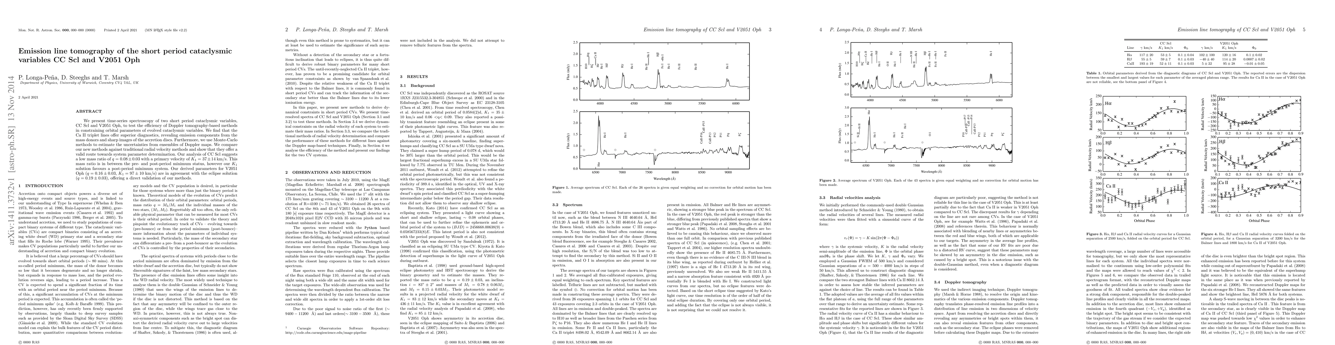 This study employs time-series spectroscopy and Doppler tomography to analyze two short period cataclysmic variables, CC Scl and V2051 Oph, finding that Ca~II triplet lines provide detailed diagnostics of mass donors and accretion discs. The new methods show improved accuracy over traditional radial velocity techniques in determining system parameters.