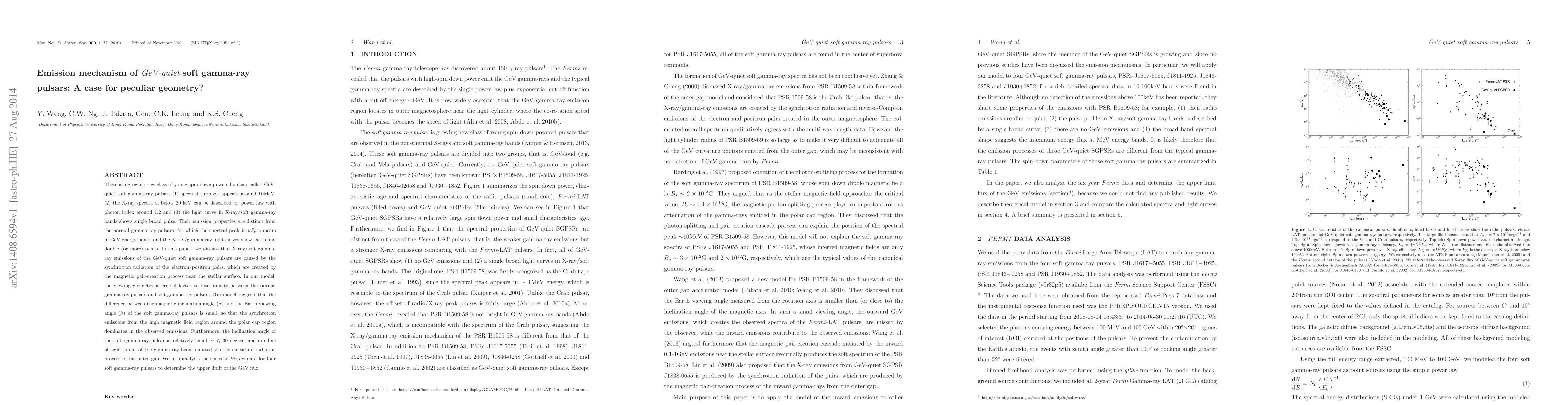 This paper explores the emission mechanism of GeV-quiet soft gamma-ray pulsars, proposing that their distinct spectral and light curve characteristics arise from synchrotron radiation of electron/positron pairs created near the pulsar's surface. The model emphasizes the importance of peculiar viewing geometry, suggesting small magnetic inclination angles and off-beam observation angles.