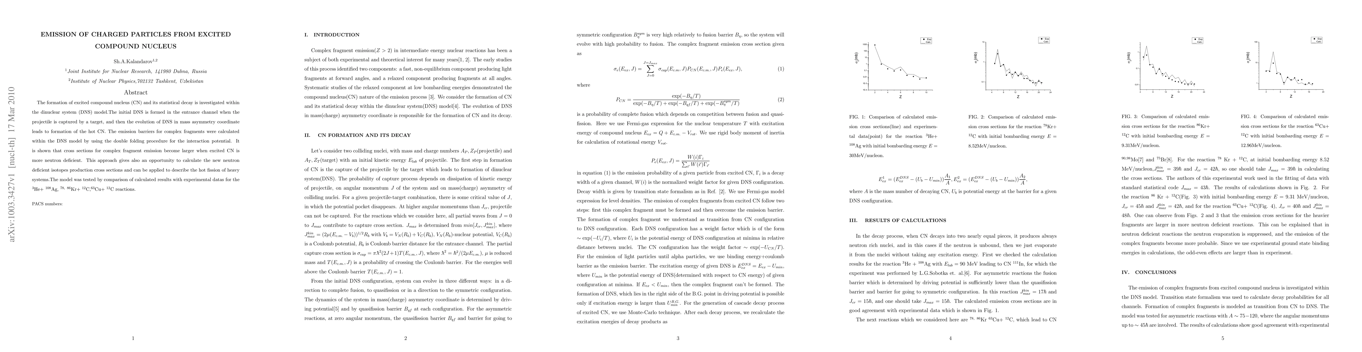 The formation of excited compound nucleus (CN) and its statistical decay is investigated within the dinuclear system (DNS) model.The initial DNS is formed in the entrance channel when the projectile is captured by a target, and then the evolution of DNS in mass asymmetry coordinate leads to formation of the hot CN. The emission barriers for complex fragments were calculated within the DNS model by using the double folding procedure for the interaction potential. It is shown that cross sections for complex fragment emission become larger when excited CN is more neutron deficient. This approach gives also an opportunity to calculate the new neutron deficient isotopes production cross sections and can be applied to describe the hot fission of heavy systems.The model was tested by comparison of calculated results with experimental data