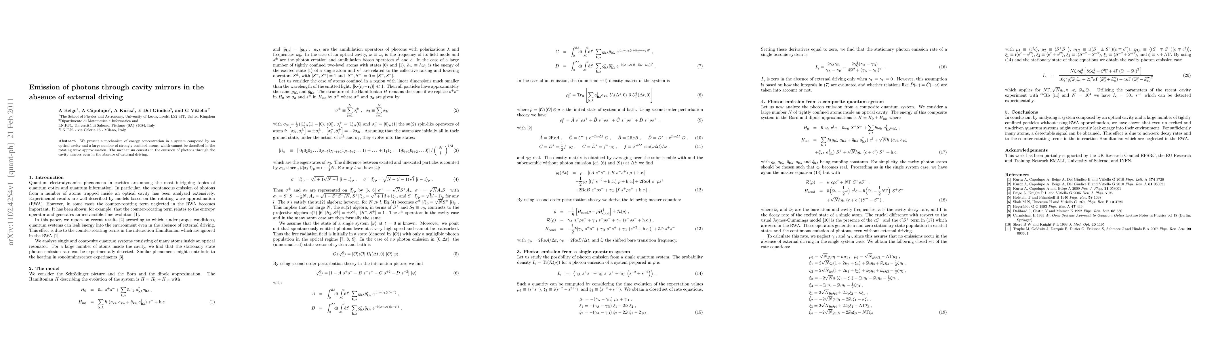 Researchers discovered a mechanism for photon emission through cavity mirrors without external driving, revealing a new energy concentration process in optical systems.