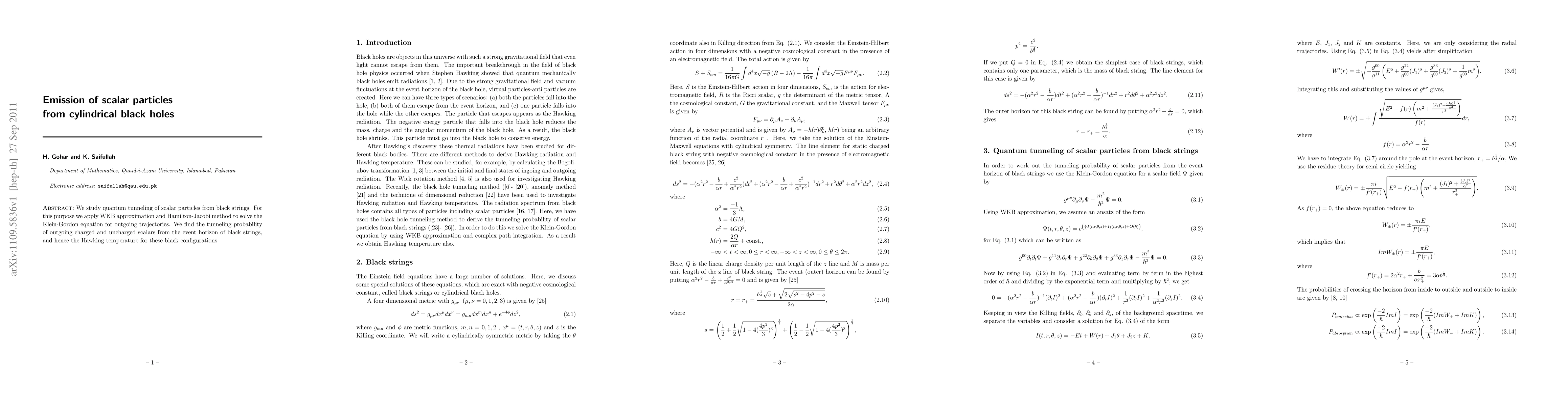 This paper investigates the quantum tunneling of scalar particles from cylindrical black holes, employing the WKB approximation and Hamilton-Jacobi method to determine the tunneling probability and derive the Hawking temperature for these black string configurations.