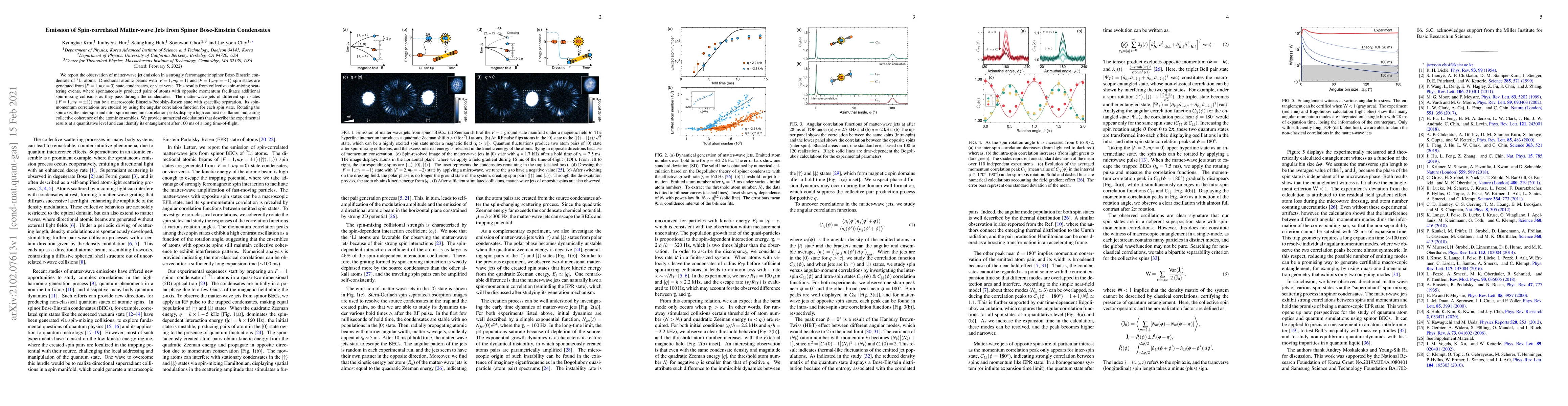 This paper reports the generation of spin-correlated matter-wave jets from a spinor Bose-Einstein condensate of $^7$Li atoms, revealing directional atomic beams with opposite spin states resulting from collective spin-mixing scattering. The study highlights the macroscopic coherence and entanglement of the emitted beams, confirmed through numerical calculations.