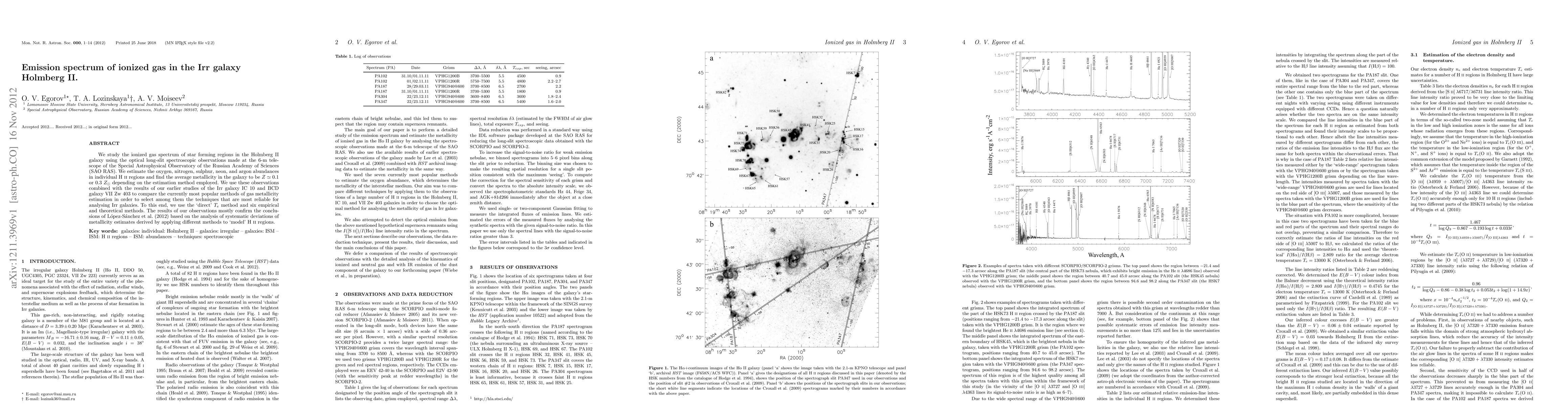 This study analyzes the ionized gas spectrum in star-forming regions of Holmberg II galaxy using optical spectroscopy, estimating elemental abundances and finding average metallicity. The research compares various gas metallicity estimation methods to determine the most reliable for Irr galaxies.