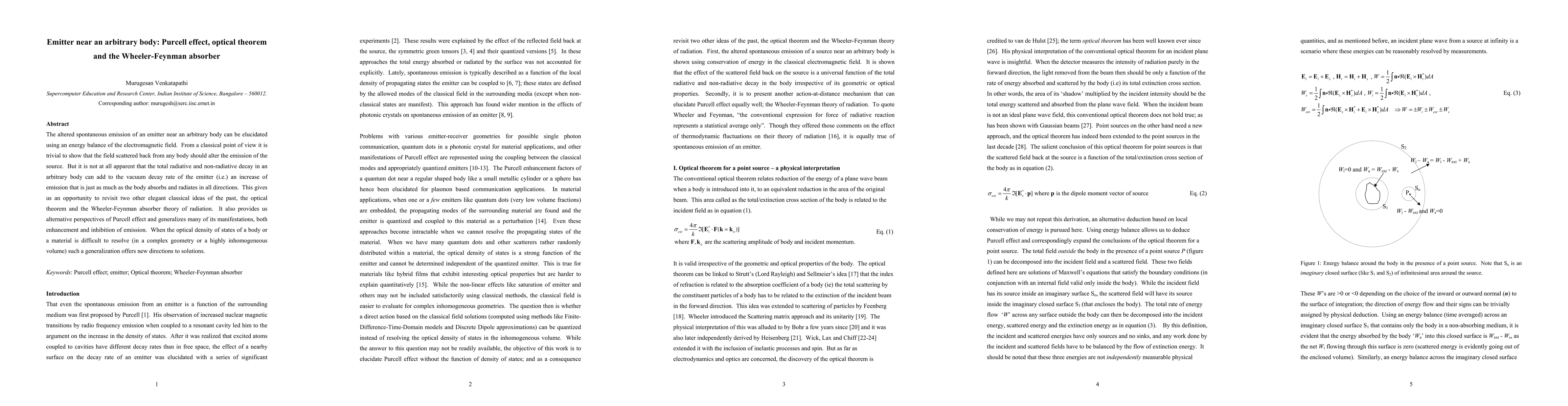 The altered spontaneous emission of an emitter near an arbitrary body can be elucidated using an energy balance of the electromagnetic field. From a classical point of view it is trivial to show that the field scattered back from any body should alter the emission of the source. But it is not at all apparent that the total radiative and non-radiative decay in an arbitrary body can add to the vacuum decay rate of the emitter (i.e.) an increase of emission that is just as much as the body absorbs and radiates in all directions. This gives us an opportunity to revisit two other elegant classical ideas of the past, the optical theorem and the Wheeler-Feynman absorber theory of radiation. It also provides us alternative perspectives of Purcell effect and generalizes many of its manifestations, both enhancement and inhibition of emission. When the optical density of states of a body or a material is difficult to resolve (in a complex geometry or a highly inhomogeneous volume) such a generalization offers new directions to solutions.