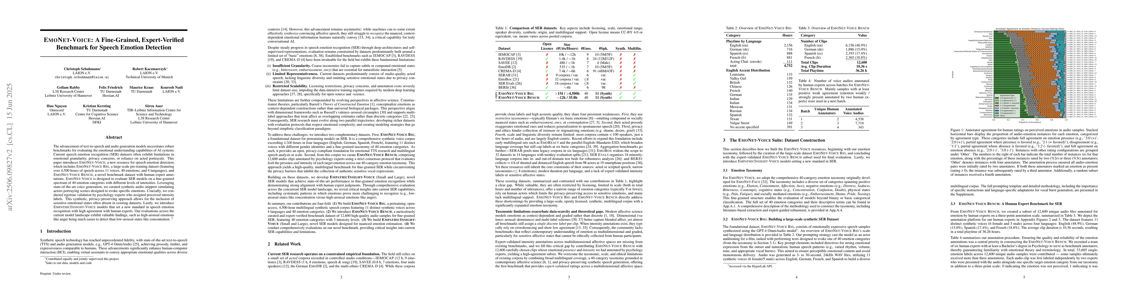 A new dataset called EmoNet-Voice is introduced to evaluate speech emotion recognition models on a fine-grained spectrum of 40 emotions, offering a more comprehensive benchmark for AI systems.