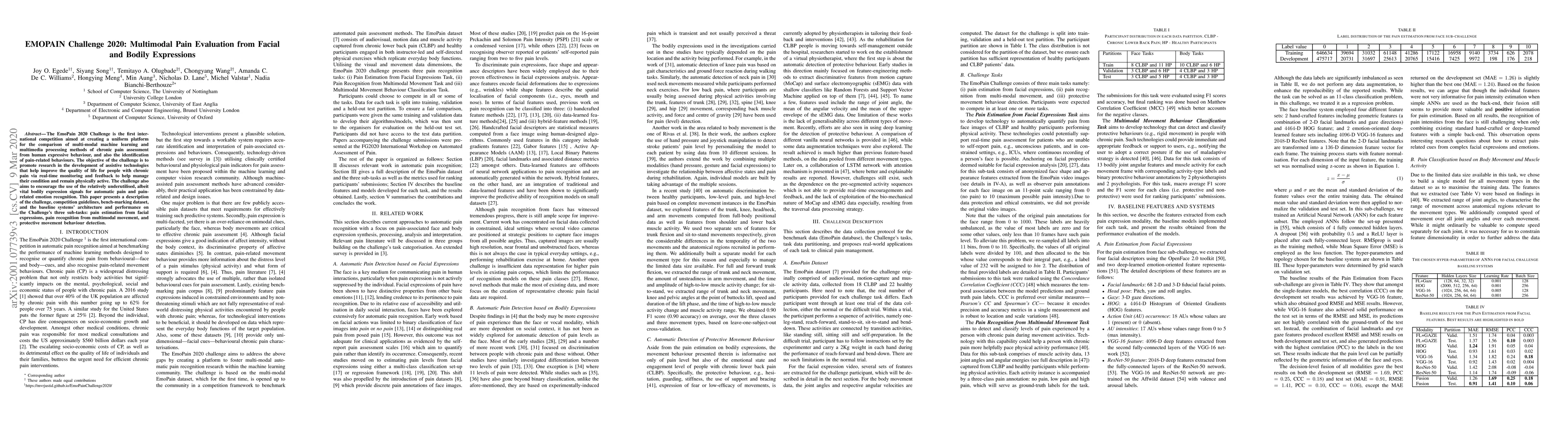 The EmoPain 2020 Challenge is the first international competition aimed at creating a uniform platform for the comparison of machine learning and multimedia processing methods of automatic chronic pain assessment from human expressive behaviour, and also the identification of pain-related behaviours. The objective of the challenge is to promote research in the development of assistive technologies that help improve the quality of life for people with chronic pain via real-time monitoring and feedback to help manage their condition and remain physically active. The challenge also aims to encourage the use of the relatively underutilised, albeit vital bodily expression signals for automatic pain and pain-related emotion recognition. This paper presents a description of the challenge, competition guidelines, bench-marking dataset, and the baseline systems' architecture and performance on the three sub-tasks: pain estimation from facial expressions, pain recognition from multimodal movement, and protective movement behaviour detection.