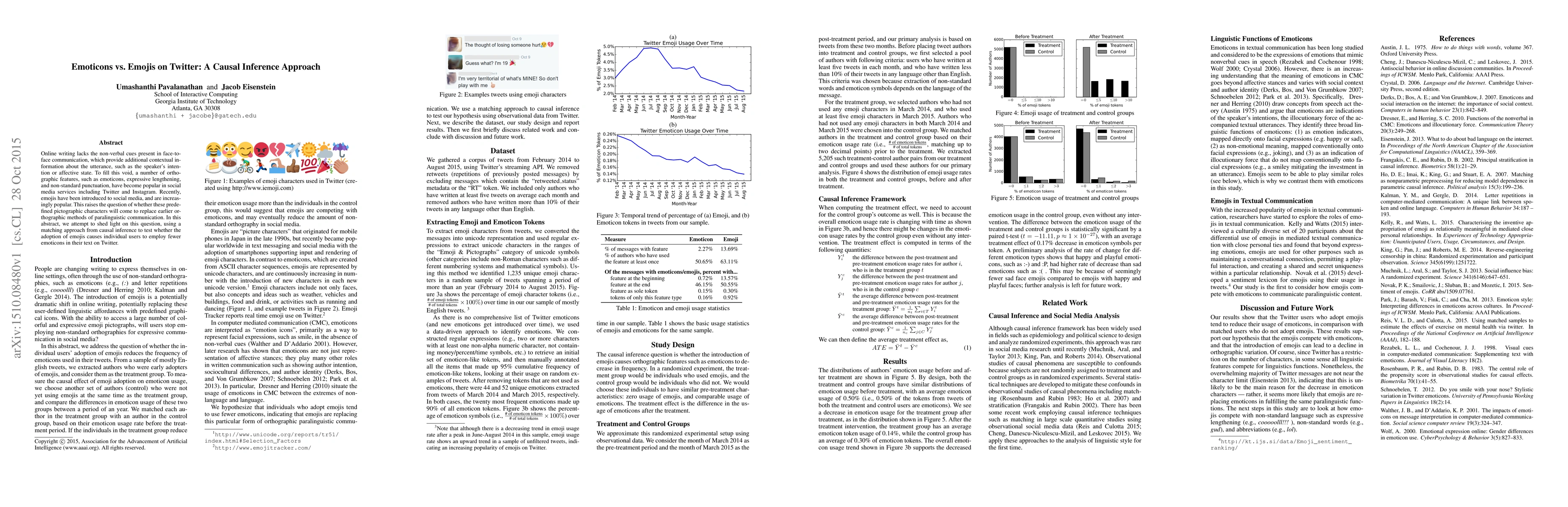 This study investigates whether the introduction of emojis on Twitter leads to a reduction in the use of emoticons by individual users, employing a causal inference matching approach to analyze this shift in paralinguistic communication. The findings aim to determine if emojis are replacing traditional emoticons in online text communication.