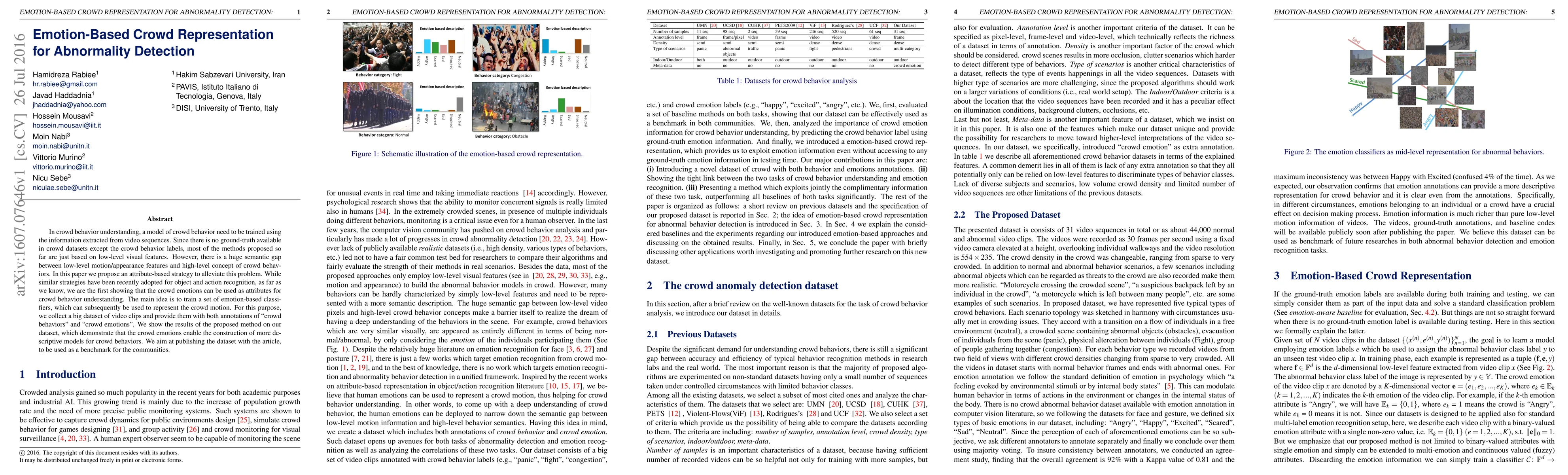 This paper proposes an emotion-based strategy to bridge the semantic gap in crowd behavior understanding by training emotion-based classifiers. The authors introduce a new dataset annotated with both crowd behaviors and emotions, demonstrating that crowd emotions can enhance the representation of crowd motion.