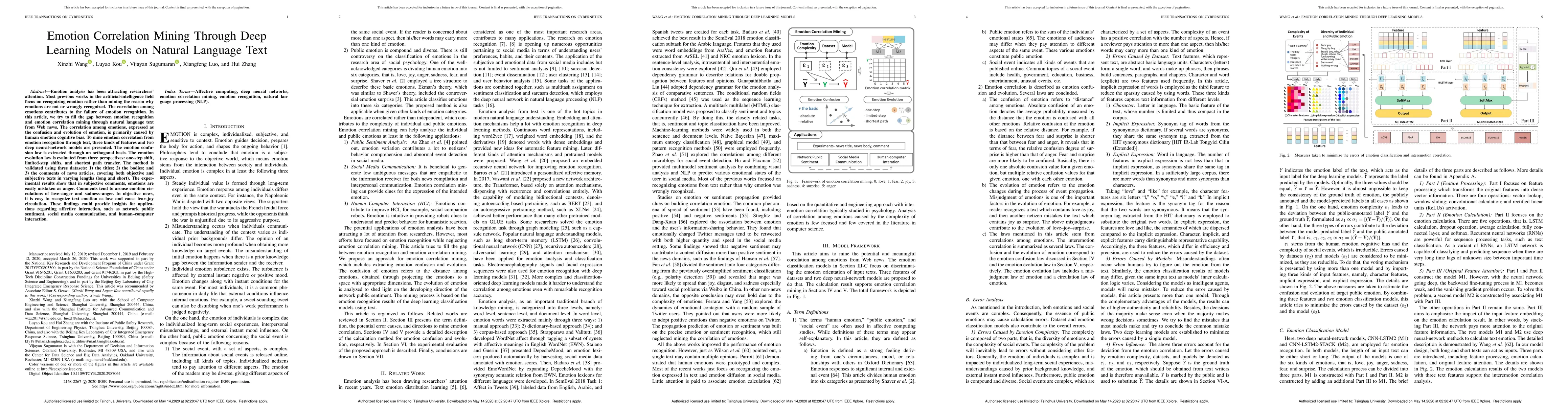 This paper explores the correlation between emotions extracted from natural language text, using deep learning models to analyze web news. It identifies emotion confusion and evolution patterns due to cognitive biases and evaluates these through emotion confusion and evolution laws. Results reveal common emotional misrecognitions and circulations in both objective news and subjective comments, offering insights for applications in public sentiment analysis and social media communication.