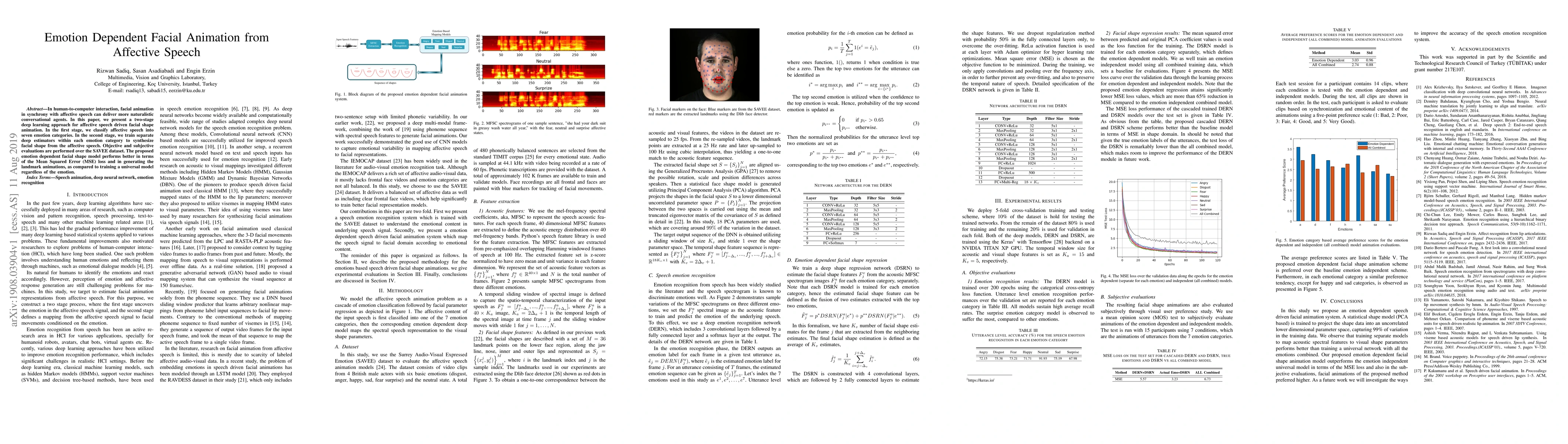 This paper proposes a two-stage deep learning method to animate facial shapes in response to affective speech, classifying speech into seven emotion categories and training separate models for each emotion to generate more naturalistic facial animations. The approach outperforms a universal model in both MSE loss and landmark animation accuracy.