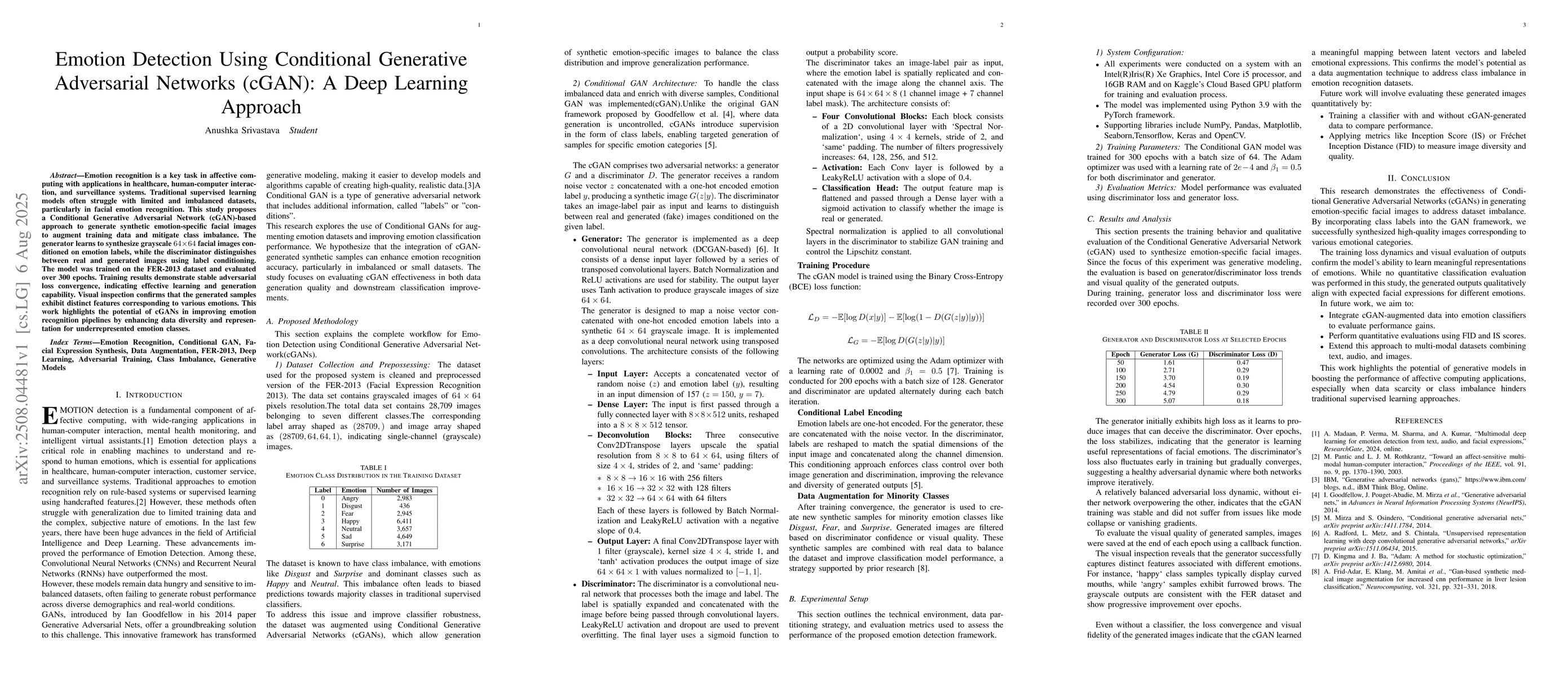 This paper presents a deep learning-based approach to emotion detection using Conditional Generative Adversarial Networks (cGANs). Unlike traditional unimodal techniques that rely on a single data type, we explore a multimodal framework integrating text, audio, and facial expressions. The proposed cGAN architecture is trained to generate synthetic emotion-rich data and improve classification accuracy across multiple modalities. Our experimental results demonstrate significant improvements in emotion recognition performance compared to baseline models. This work highlights the potential of cGANs in enhancing human-computer interaction systems by enabling more nuanced emotional understanding.