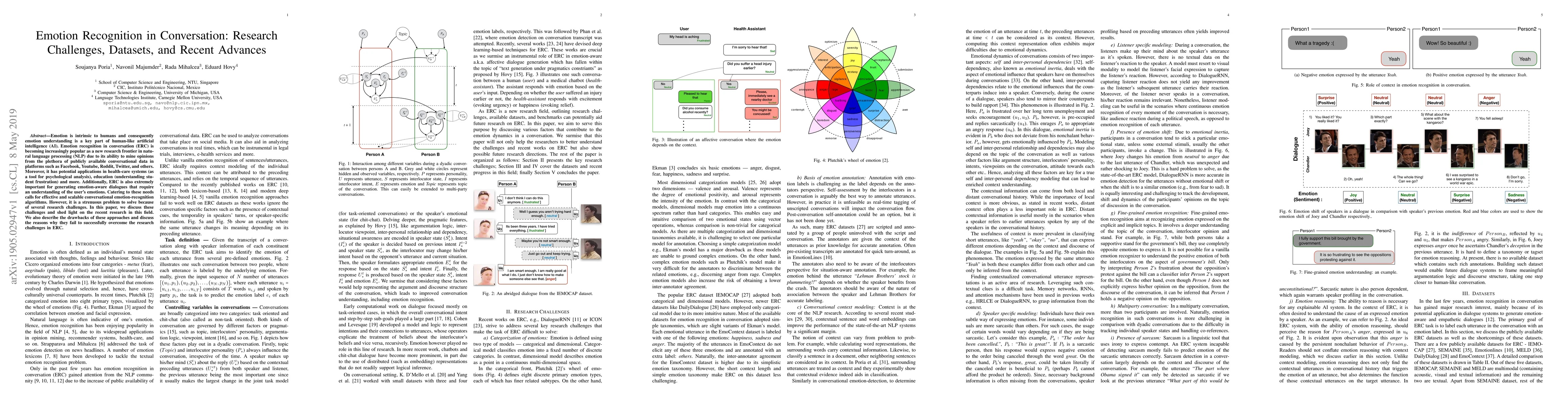 This paper explores the challenges and recent advances in emotion recognition in conversation (ERC), a crucial aspect of human-like AI. It highlights the difficulties in developing effective ERC algorithms and reviews existing datasets and methodologies, noting their limitations in addressing these challenges.