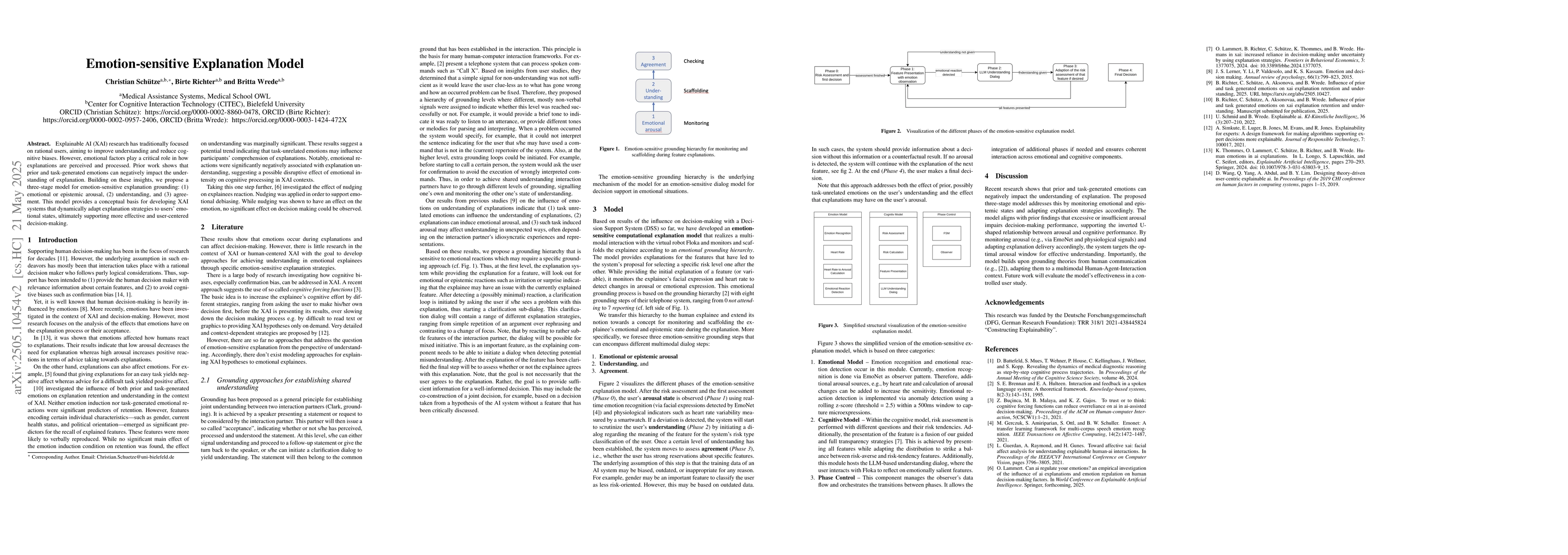 The paper proposes a three-stage emotion-sensitive explanation model grounded in emotional arousal, understanding, and agreement, aiming to adapt XAI strategies to users' emotional states.