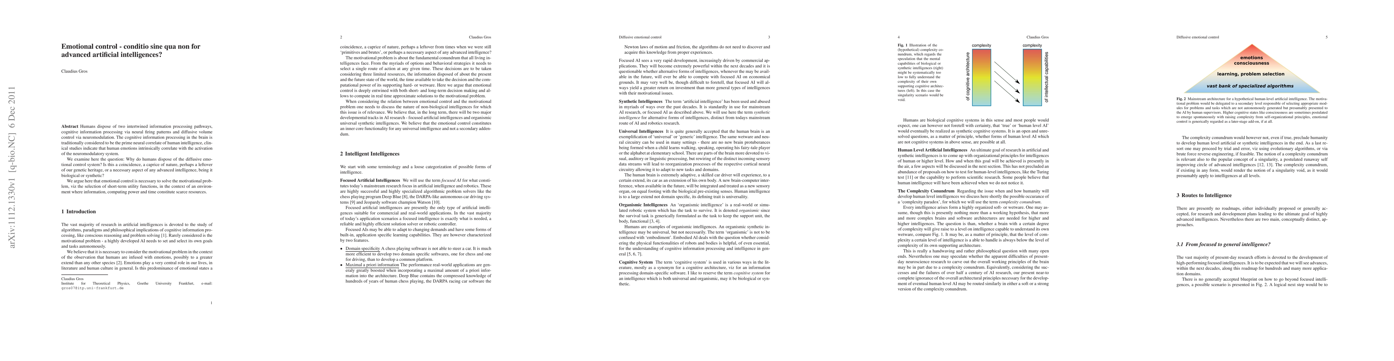 This paper explores whether emotional control is essential for advanced intelligence, positing that the neuromodulatory system's role in human emotions is crucial for solving the motivational problem in resource-constrained environments. It argues that emotional control may be a necessary aspect of any advanced intelligence, biological or synthetic.