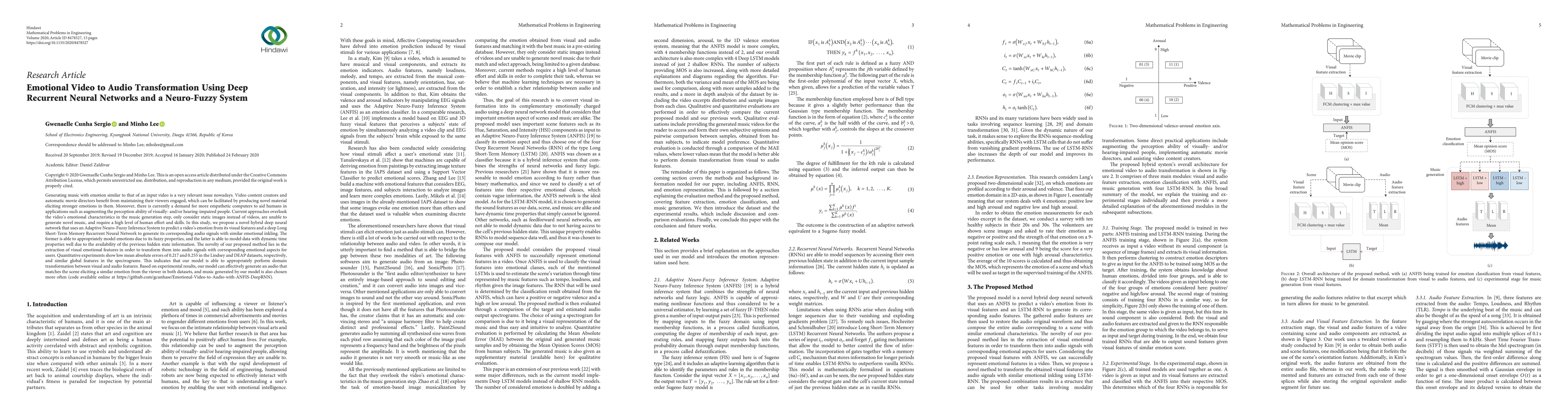 This study proposes a hybrid deep neural network that uses a neuro-fuzzy system to predict video emotions from visual features and generate audio signals with similar emotional aspects.