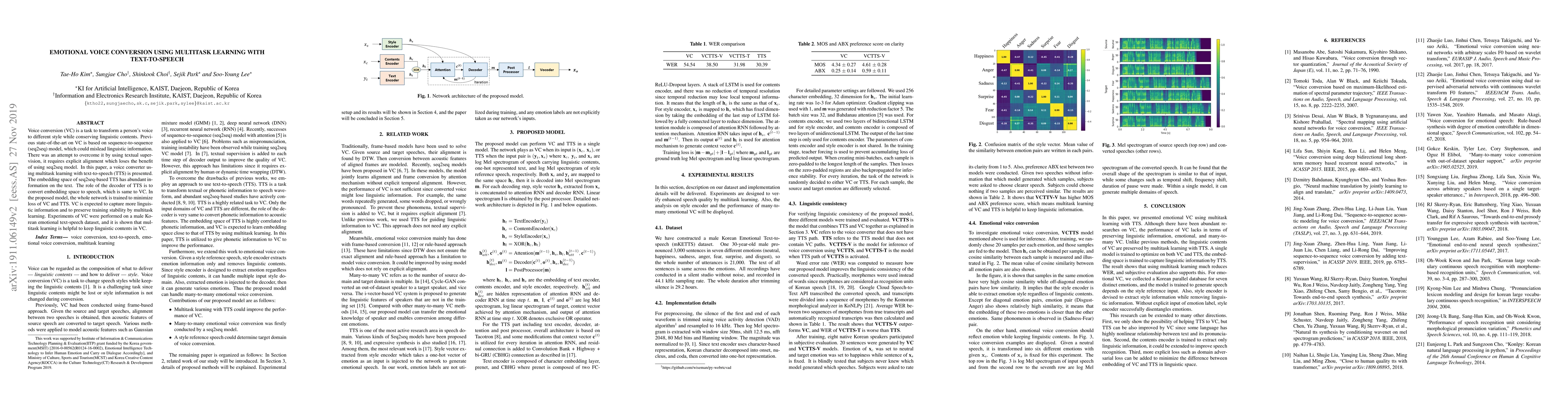 This paper proposes a voice converter using multitask learning with text-to-speech (TTS) to improve emotional voice conversion by minimizing losses from both VC and TTS. The model leverages the rich text information from TTS to enhance linguistic content preservation and training stability in voice conversion.