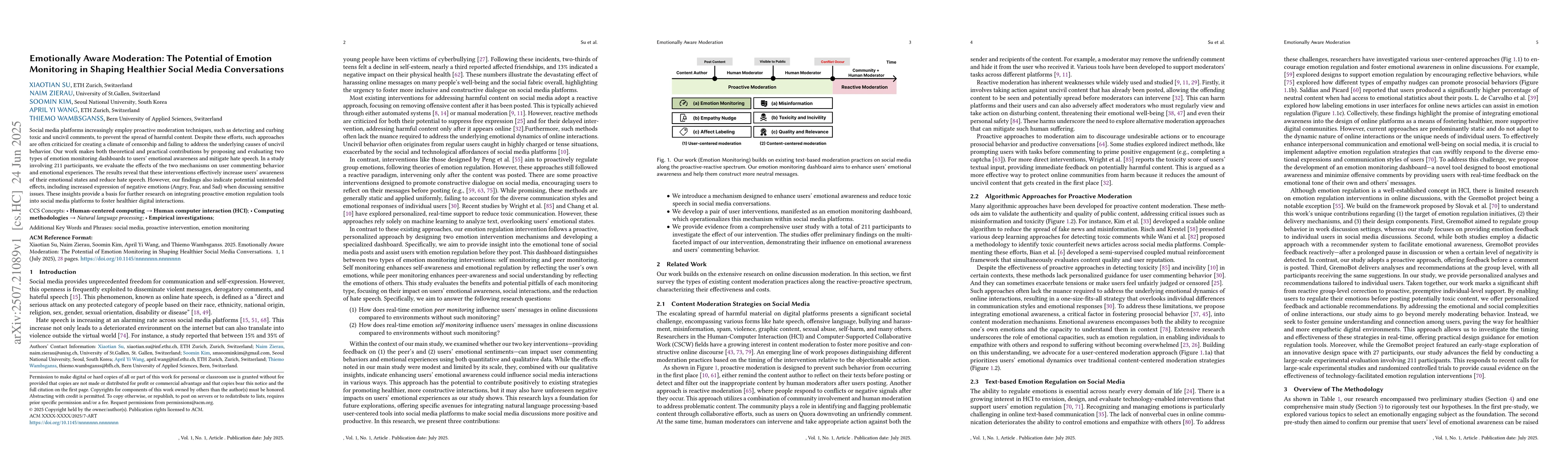 Social media platforms increasingly employ proactive moderation techniques, such as detecting and curbing toxic and uncivil comments, to prevent the spread of harmful content. Despite these efforts, such approaches are often criticized for creating a climate of censorship and failing to address the underlying causes of uncivil behavior. Our work makes both theoretical and practical contributions by proposing and evaluating two types of emotion monitoring dashboards to users' emotional awareness and mitigate hate speech. In a study involving 211 participants, we evaluate the effects of the two mechanisms on user commenting behavior and emotional experiences. The results reveal that these interventions effectively increase users' awareness of their emotional states and reduce hate speech. However, our findings also indicate potential unintended effects, including increased expression of negative emotions (Angry, Fear, and Sad) when discussing sensitive issues. These insights provide a basis for further research on integrating proactive emotion regulation tools into social media platforms to foster healthier digital interactions.