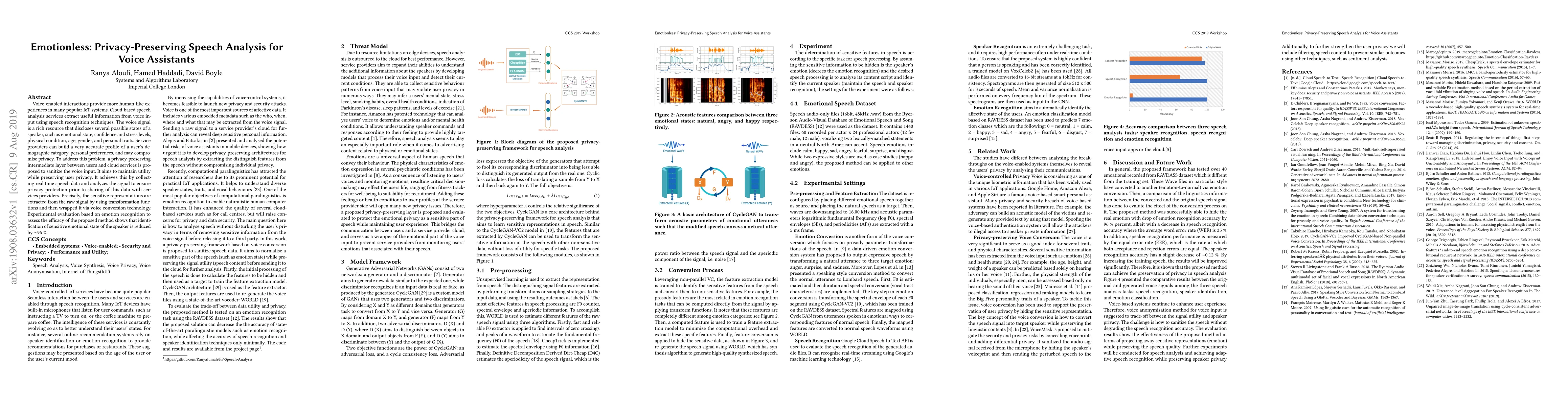 This paper proposes a privacy-preserving intermediate layer for voice-enabled IoT systems to protect user privacy during speech analysis. It achieves this by sanitizing voice input before sharing with cloud services, reducing the identification of sensitive emotional states by ~96%.