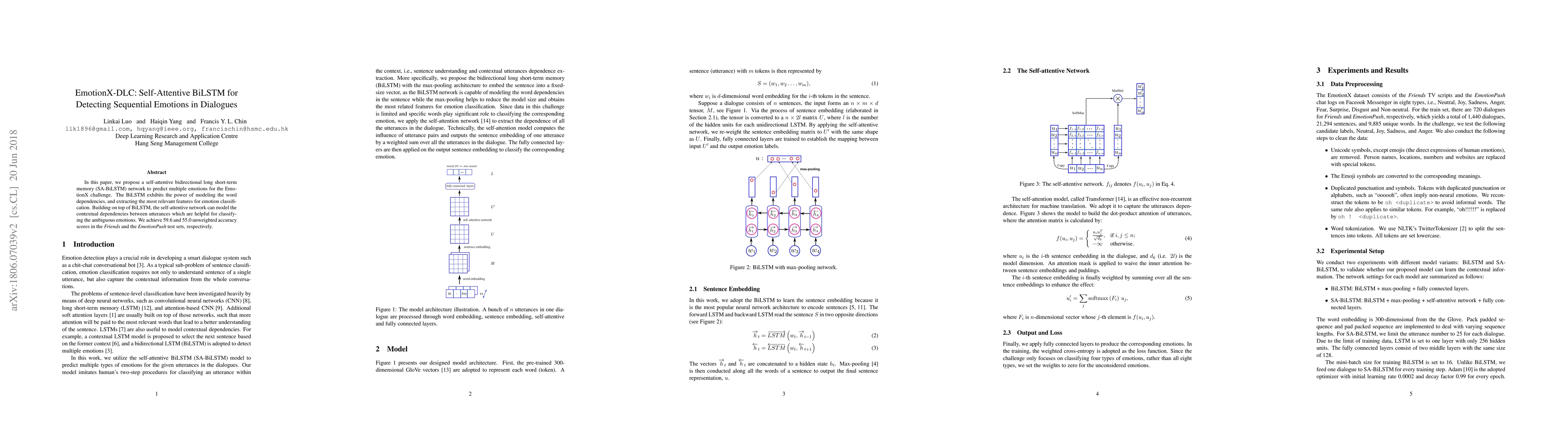 In this paper, we propose a self-attentive bidirectional long short-term memory (SA-BiLSTM) network to predict multiple emotions for the EmotionX challenge. The BiLSTM exhibits the power of modeling the word dependencies, and extracting the most relevant features for emotion classification. Building on top of BiLSTM, the self-attentive network can model the contextual dependencies between utterances which are helpful for classifying the ambiguous emotions. We achieve 59.6 and 55.0 unweighted accuracy scores in the \textit{Friends} and the \textit{EmotionPush} test sets, respectively.