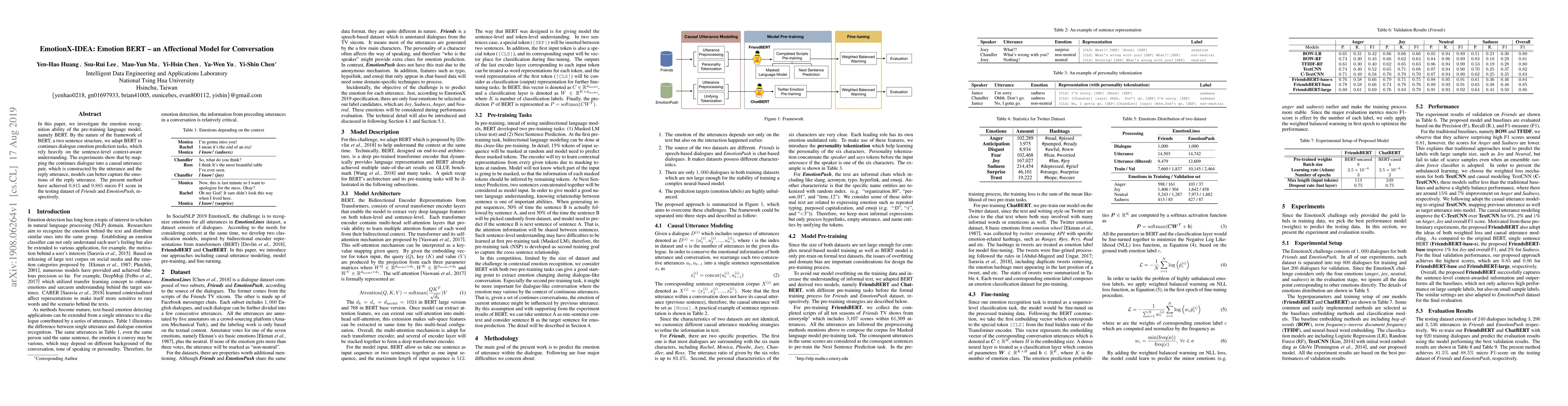 In this paper, we investigate the emotion recognition ability of the pre-training language model, namely BERT. By the nature of the framework of BERT, a two-sentence structure, we adapt BERT to continues dialogue emotion prediction tasks, which rely heavily on the sentence-level context-aware understanding. The experiments show that by mapping the continues dialogue into a causal utterance pair, which is constructed by the utterance and the reply utterance, models can better capture the emotions of the reply utterance. The present method has achieved 0.815 and 0.885 micro F1 score in the testing dataset of Friends and EmotionPush, respectively.
