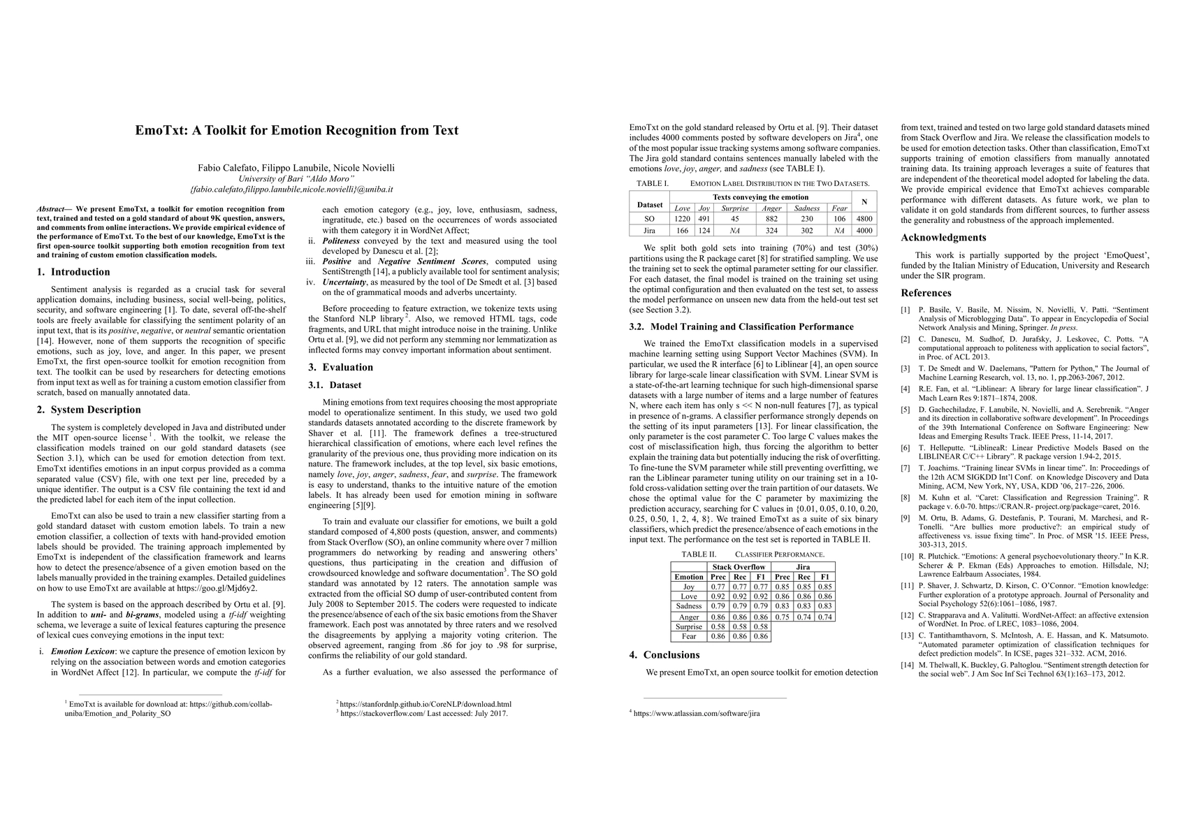 EmoTxt is an open-source toolkit for emotion recognition from text, trained on a dataset of 9,000 online interactions, and it supports both pre-trained emotion classification and custom model training. It offers empirical evidence of its performance in recognizing emotions from text.