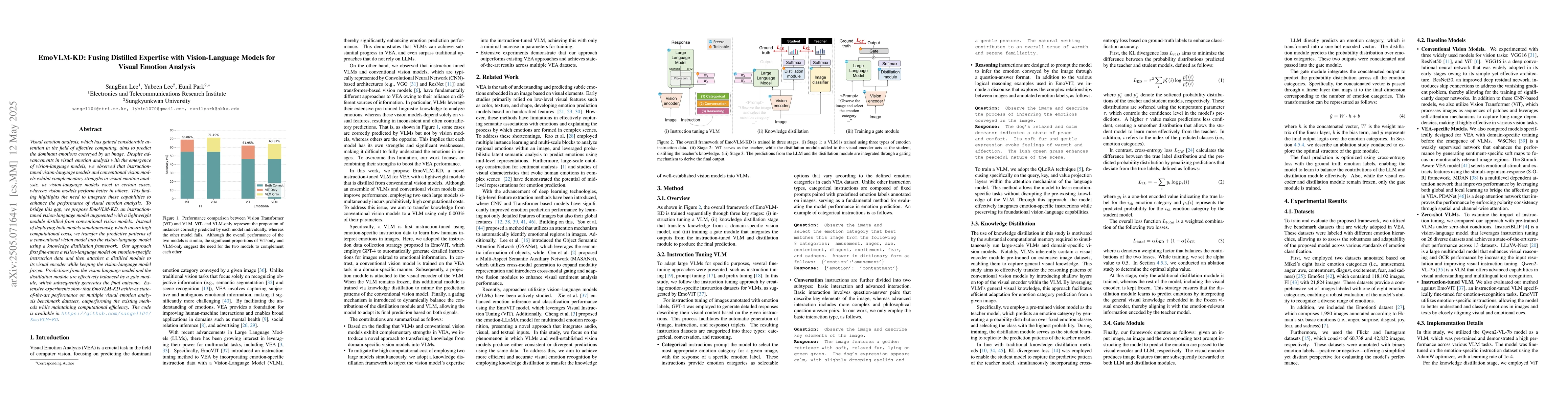 This paper proposes EmoVLM-KD, a vision-language model that combines strengths of conventional vision models and instruction-tuned vision-language models for visual emotion analysis, achieving state-of-the-art performance while maintaining computational efficiency.