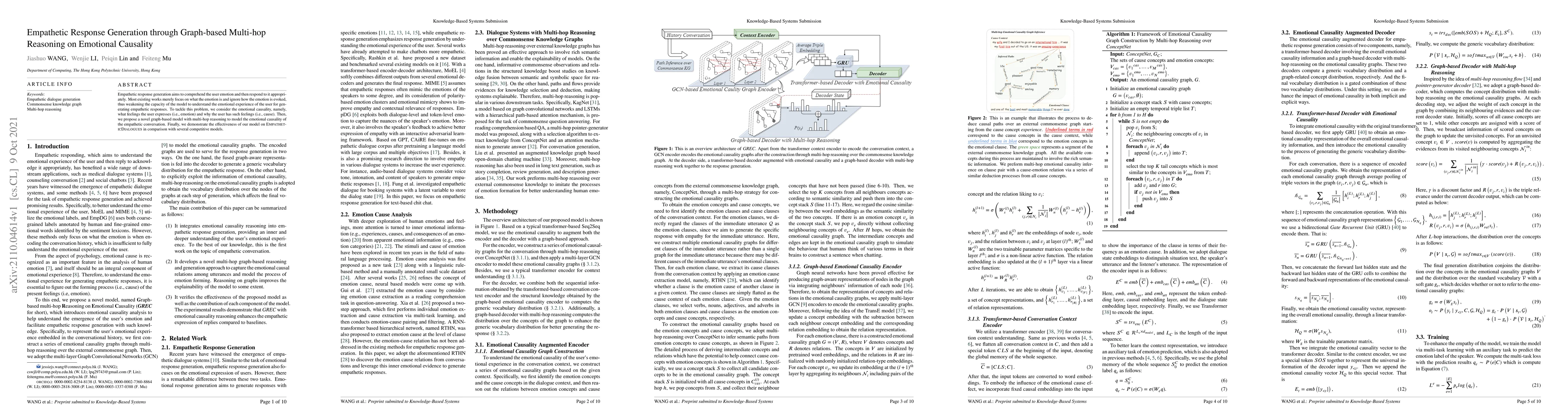 This paper proposes a graph-based model with multi-hop reasoning to enhance empathetic response generation by understanding both user emotions and their underlying causes. The model demonstrates superior performance in empathetic dialogue compared to competitive approaches.