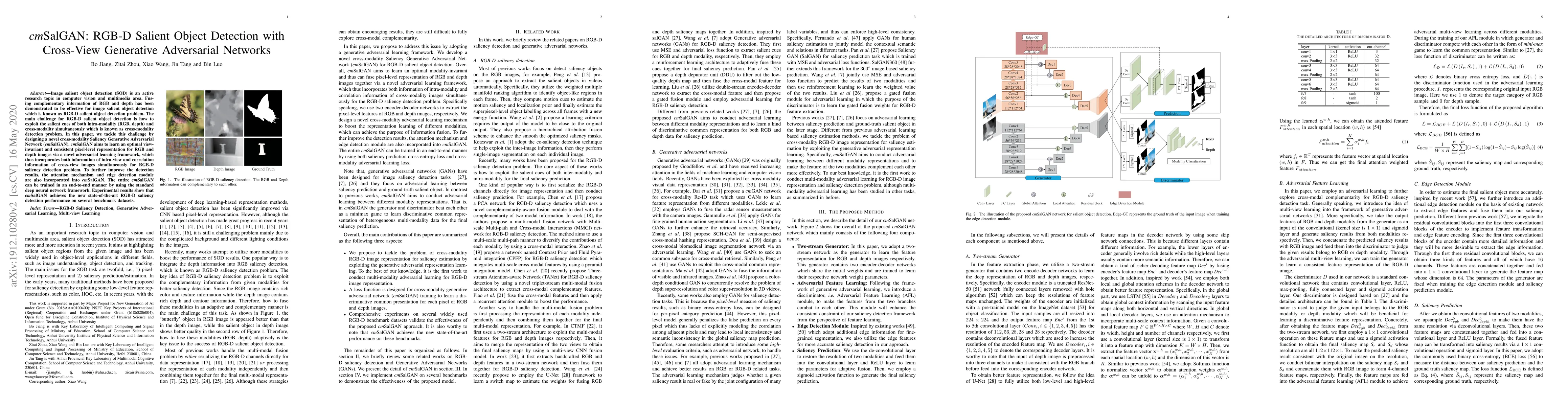 This paper introduces \emph{cm}SalGAN, a novel Saliency Generative Adversarial Network for RGB-D salient object detection, which leverages both intra-modality and cross-modality information through an adversarial learning framework. The model incorporates an attention mechanism and edge detection module to achieve state-of-the-art performance on benchmark datasets.