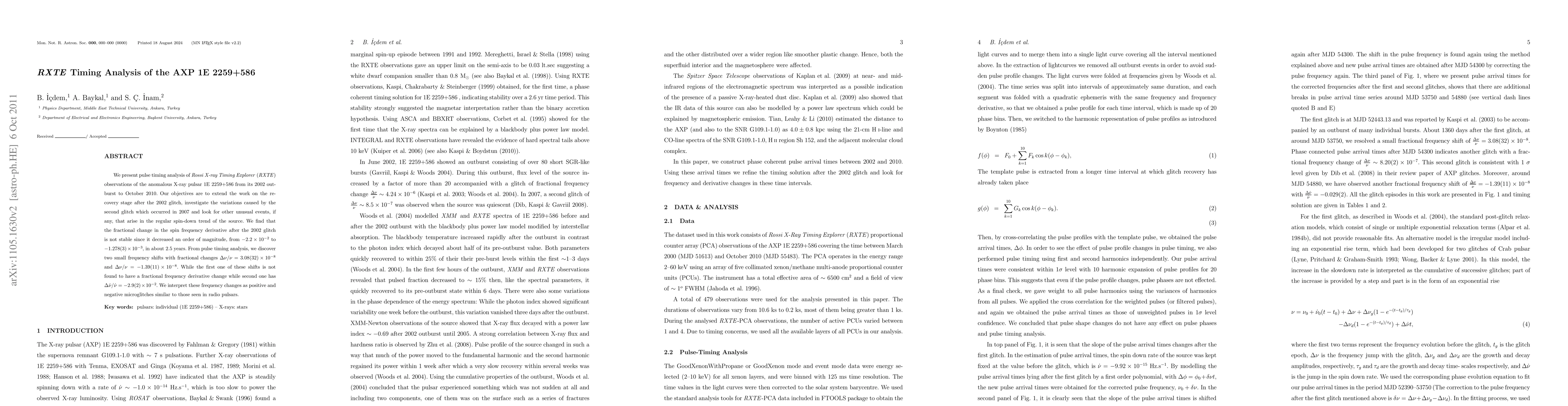 We report the pulse timing analysis of \emph{Rossi X-ray Timing Explorer} (\emph{RXTE}) observations of the anomalous X-ray pulsar 1E 2259+586 from its 2002 outburst to October, 2010. Our objectives are to extend the work on the recovery stage after the 2002 glitch, investigate the variations caused by the second glitch which occurred in 2007 and look for other unusual events, if any, that arise in the regular spin-down trend of the source. The recovery of the 2002 glitch gives good fit when the two-exponential glitch model of the Crab pulsar is used, rather than the standard glitch model, in the 1360-day interval after the first glitch. The sampling of the following 260-day is not frequent enough to be phase-connected. After that interval, our timing analysis yields that there is a fractional frequency change of $\frac{\Delta\nu}{\nu}\sim8.20(2)\times10^{-7}$. Moreover, we report two frequency shifts of fractional changes, $\frac{\Delta\nu}{\nu}\sim3\times10^{-8},-1\times10^{-8}$: The first one at MJD $\sim53750$ had a positive fractional frequency change in contrast to the second one at MJD $\sim54880$ for which the pulse frequency decreased. These frequency shifts both resemble the microglitches observed in radio pulsars.
