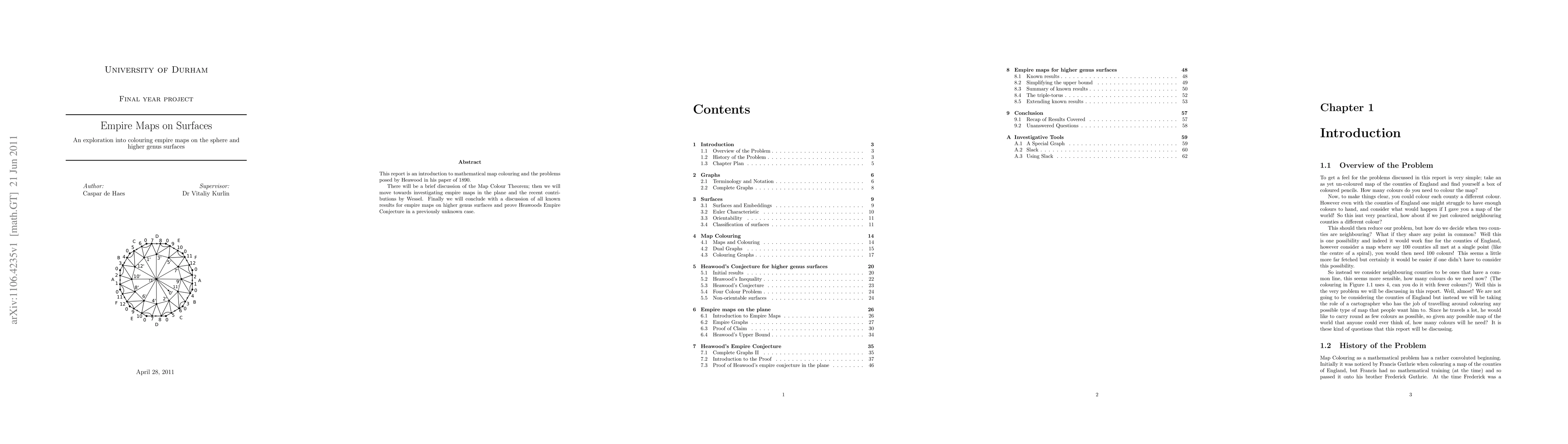 This report is an introduction to mathematical map colouring and the problems posed by Heawood in his paper of 1890. There will be a brief discussion of the Map Colour Theorem; then we will move towards investigating empire maps in the plane and the recent contributions by Wessel. Finally we will conclude with a discussion of all known results for empire maps on higher genus surfaces and prove Heawoods Empire Conjecture in a previously unknown case.