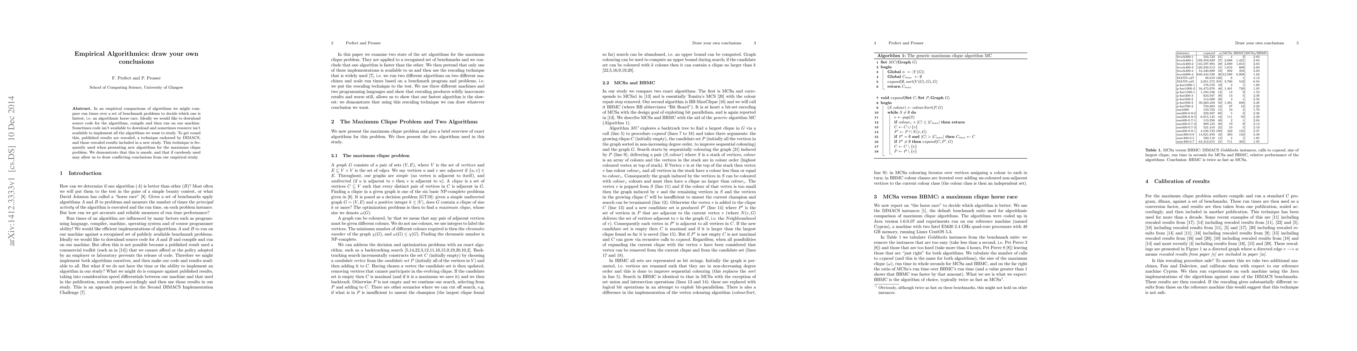In an empirical comparisons of algorithms we might compare run times over a set of benchmark problems to decide which one is fastest, i.e. an algorithmic horse race. Ideally we would like to download source code for the algorithms, compile and then run on our machine. Sometimes code isn't available to download and sometimes resource isn't available to implement all the algorithms we want to study. To get round this, published results are rescaled, a technique endorsed by DIMACS, and those rescaled results included in a new study. This technique is frequently used when presenting new algorithms for the maximum clique problem. We demonstrate that this is unsafe, and that if carelessly used may allow us to draw conflicting conclusions from our empirical study.