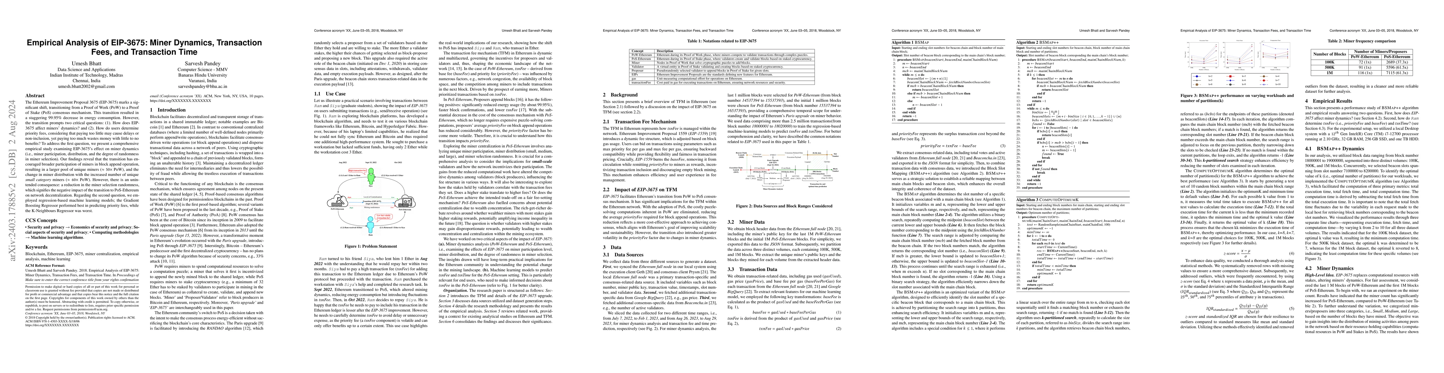 The paper examines the effects of Ethereum Improvement Proposal 3675 (EIP-3675) on miner dynamics and transaction fee prioritization under a Proof of Stake mechanism. It finds increased miner participation and a larger pool of unique miners, but reduced selection randomness, and uses machine learning to determine the best predictor for priority fees.