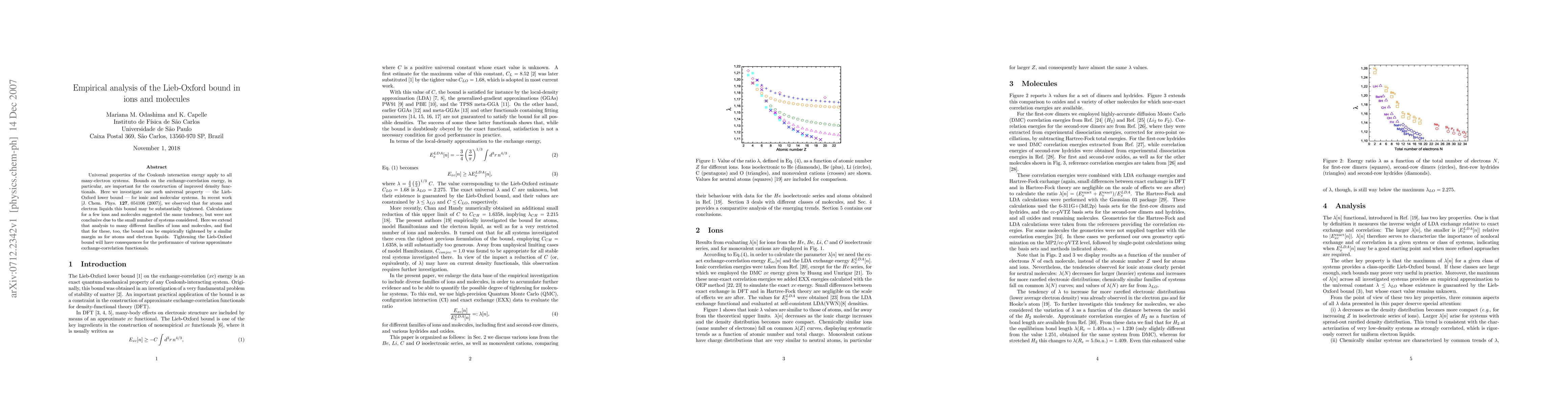 This paper investigates the Lieb-Oxford lower bound for the Coulomb interaction energy in various ionic and molecular systems, finding that the bound can be empirically tightened similarly to atoms and electron liquids. This improvement has implications for the accuracy of approximate exchange-correlation functionals.