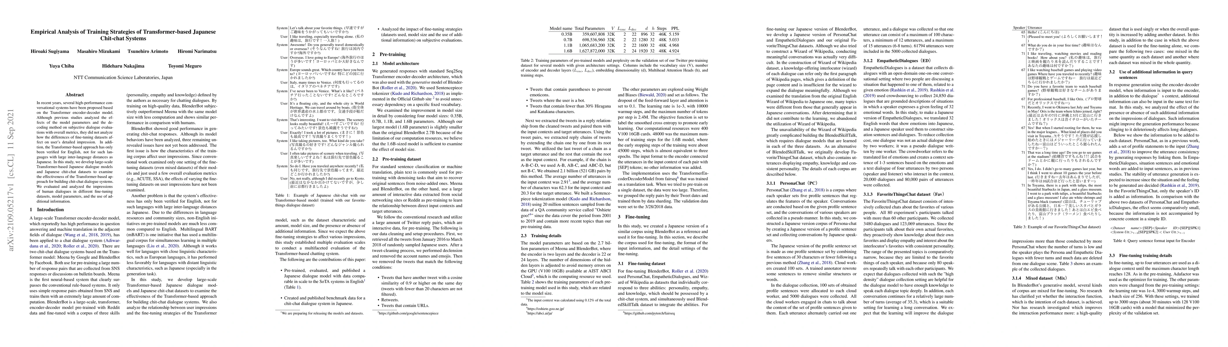 This study develops large-scale Transformer-based Japanese dialogue models and datasets to evaluate the approach's effectiveness for chit-chat systems. It analyzes human impressions of dialogues in various fine-tuning datasets, model parameters, and additional information usage.