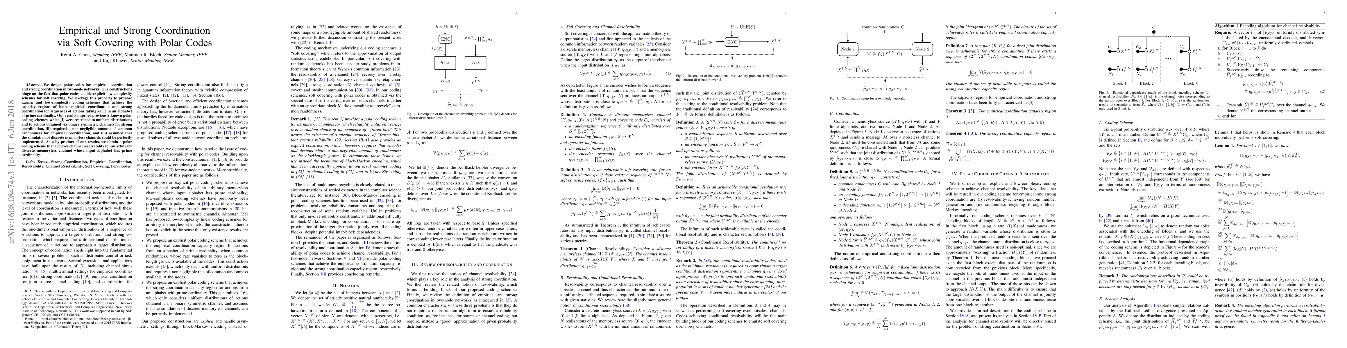 This paper presents novel polar coding schemes for empirical and strong coordination in two-node networks, leveraging soft covering to achieve capacity regions without the limitations of previous methods. The proposed schemes improve upon prior work by eliminating restrictions on distributions, reducing common randomness, and allowing for non-binary input alphabets.