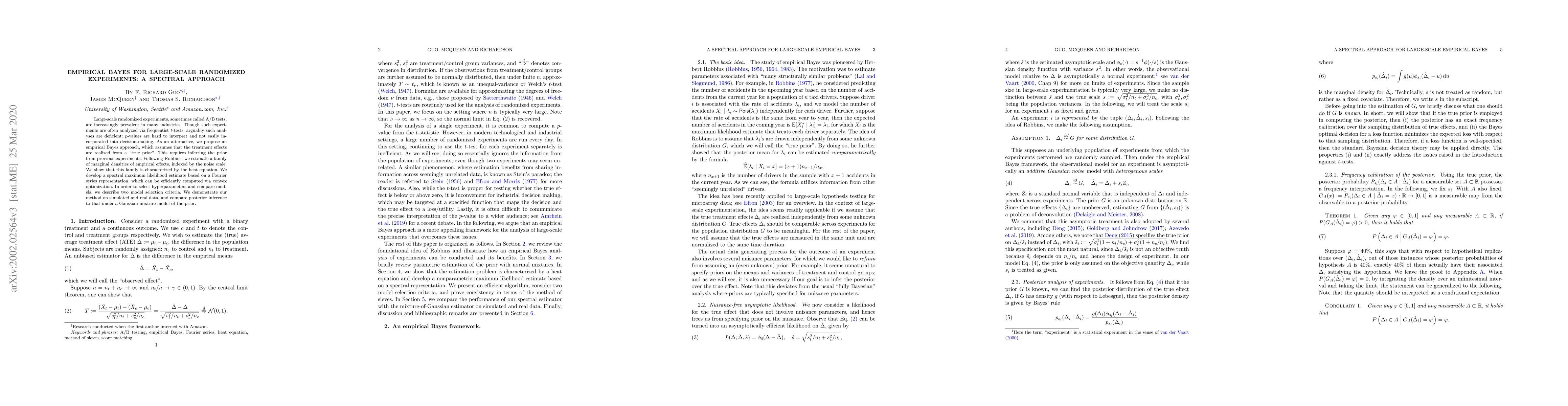 This paper proposes an empirical Bayes method for analyzing large-scale randomized experiments, using a spectral approach to estimate treatment effects. It introduces a Fourier series representation for efficient computation and compares its performance to a Gaussian mixture model.