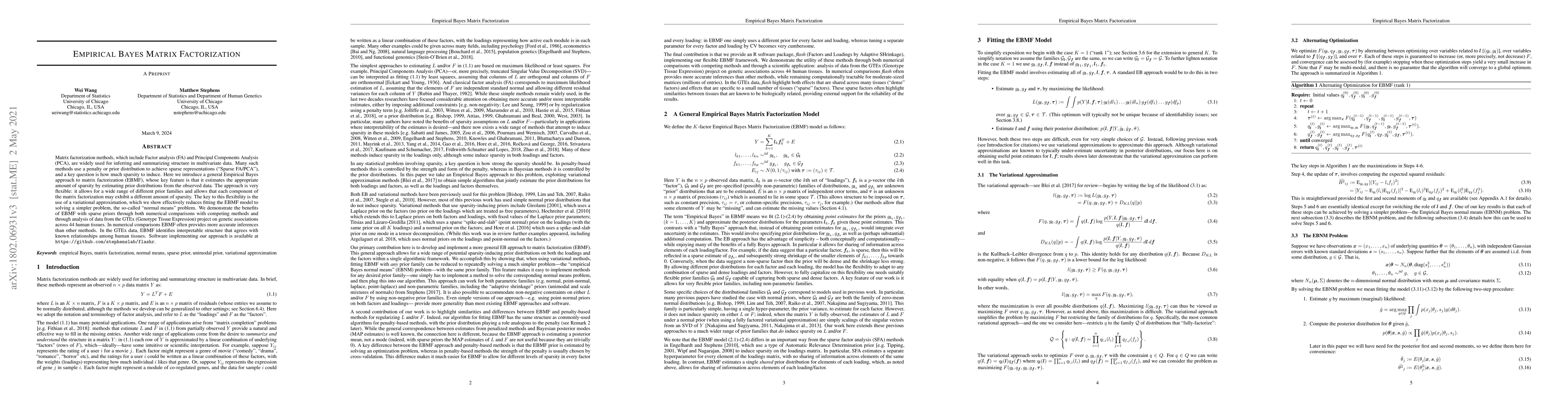 The paper introduces Empirical Bayes Matrix Factorization (EBMF), a method that uses observed data to estimate prior distributions for matrix elements, enabling adaptive sparsity. The EBMF approach is shown to provide more accurate inferences than competing methods and identifies interpretable genetic structure in GTEx data.