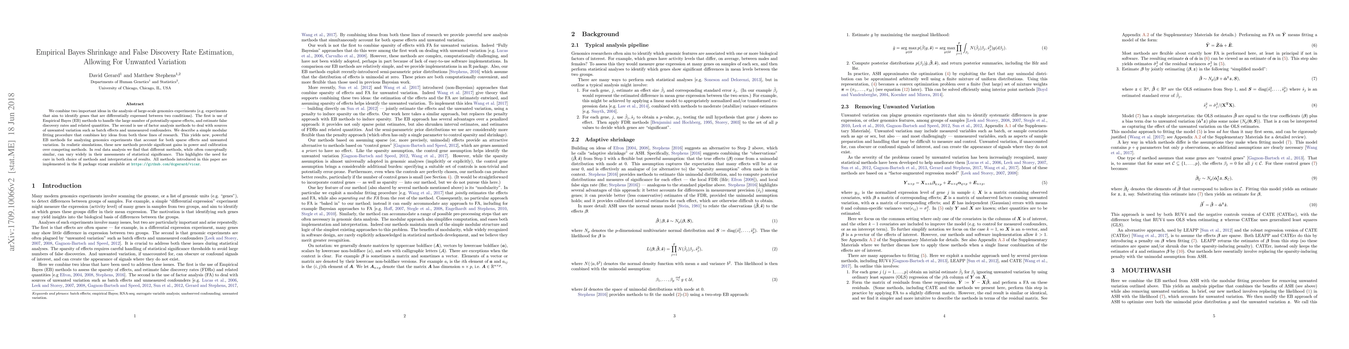 This paper introduces a new Empirical Bayes method combining factor analysis to handle unwanted variation and false discovery rate estimation for large-scale genomics experiments. The proposed modular fitting procedure significantly improves power and calibration in simulations, highlighting the importance of careful method selection and result interpretation.
