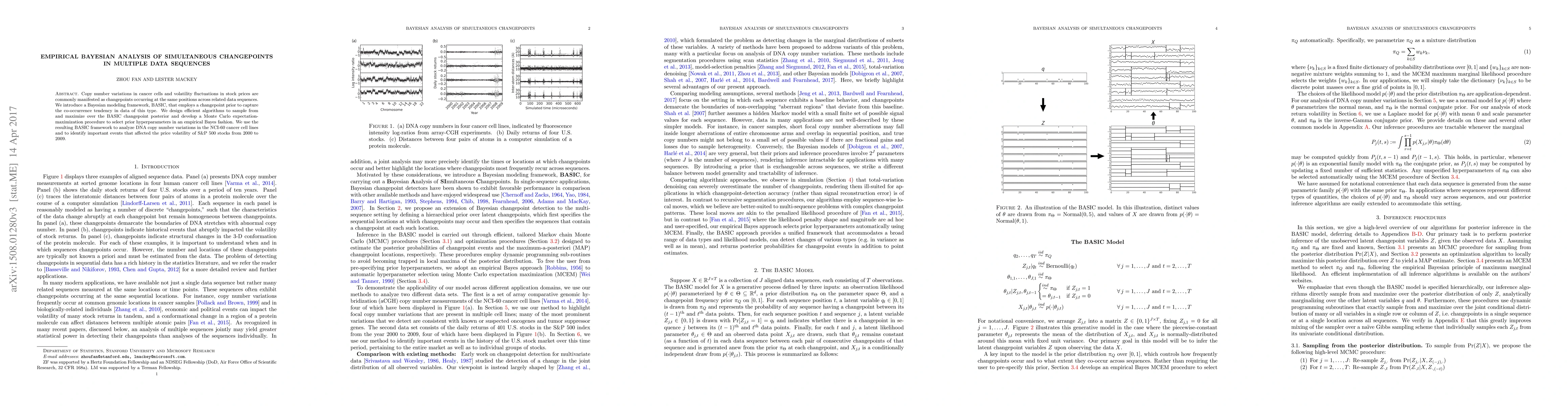 Researchers developed a Bayesian framework to identify simultaneous changepoints in multiple data sequences, such as DNA copy number variations and stock price volatility, and applied it to analyze cancer cell lines and S&P 500 stocks.