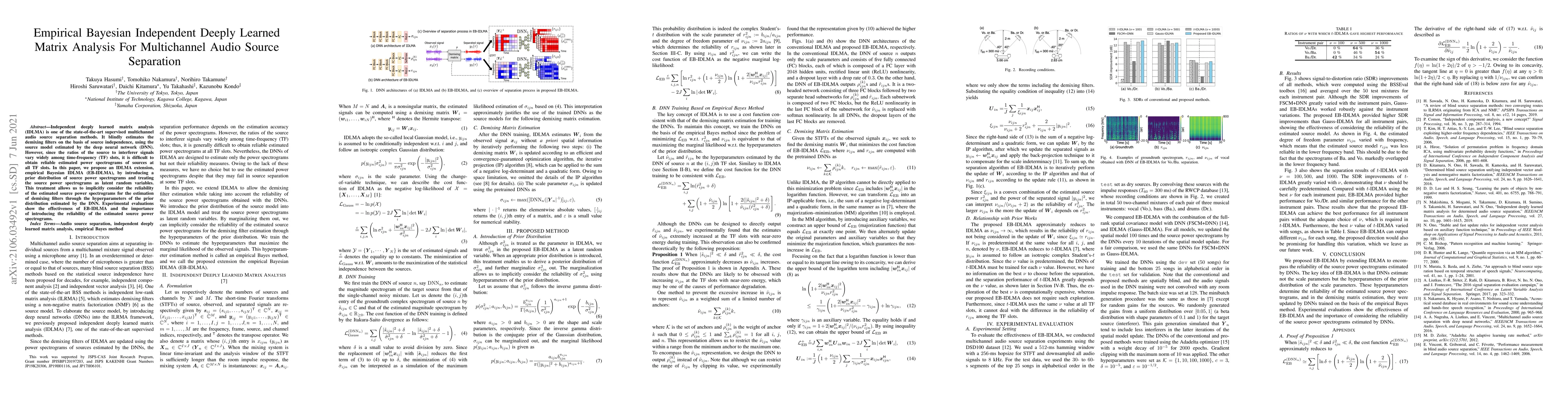 This paper proposes an empirical Bayesian extension of Independent Deeply Learned Matrix Analysis (EB-IDLMA) for multichannel audio source separation, introducing a prior distribution for source power spectrograms to account for varying reliability across time-frequency slots, thereby improving the estimation of demixing filters. Experimental results demonstrate the effectiveness of this approach.