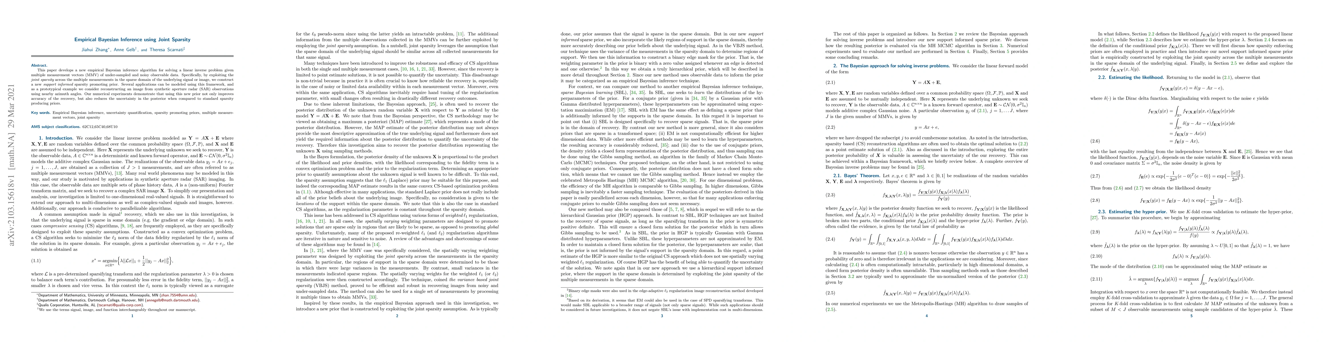 This paper introduces an empirical Bayesian inference algorithm leveraging joint sparsity across multiple measurement vectors to solve under-sampled and noisy data problems. The proposed method enhances reconstruction accuracy and reduces uncertainty in posterior estimates, demonstrated through synthetic aperture radar image reconstruction.