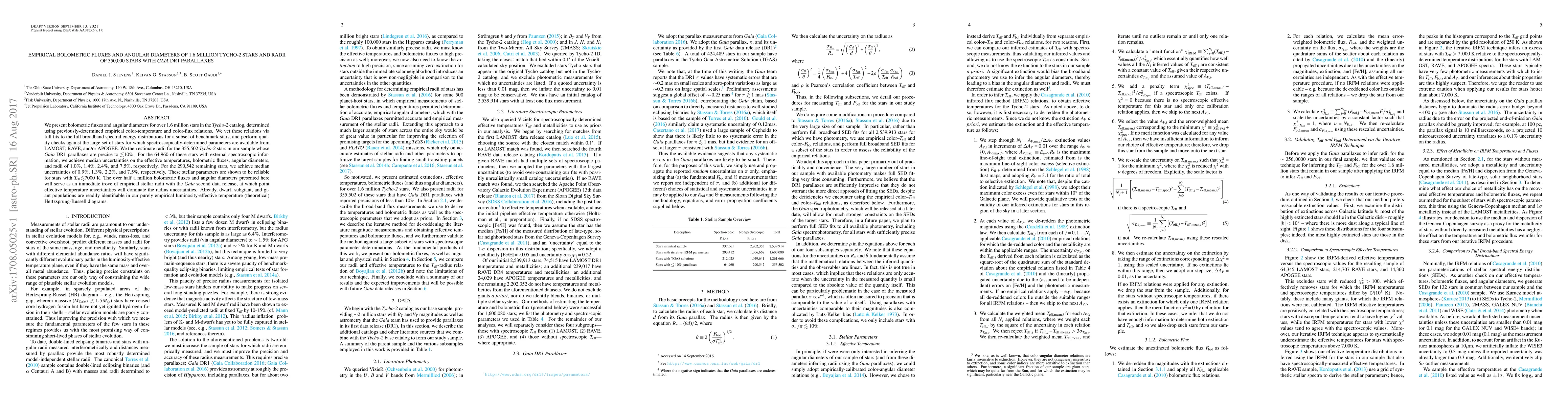We present bolometric fluxes and angular diameters for over 1.6 million stars in the {\it Tycho-2} catalog, determined using previously-determined empirical color-temperature and color-flux relations. We vet these relations via full fits to the full broadband spectral energy distributions for a subset of benchmark stars, and perform quality checks against the large set of stars for which spectroscopically-determined parameters are available from LAMOST, RAVE, and/or APOGEE. We then estimate radii for the 355,502 {\it Tycho-2} stars in our sample whose \emph{Gaia} DR1 parallaxes are precise to $\lesssim$10\%. For the 64,960 of these stars with external spectroscopic information, we achieve median uncertainties on the effective temperatures, bolometric fluxes, angular diameters, and radii of $1.0\%$, $1.4\%$, $2.4\%$, and $7.5\%$, respectively. For the 290,542 remaining stars, we achieve median uncertainties of $0.9\%$, $1.3\%$, $2.2\%$, and $7.5\%$, respectively. These stellar parameters are shown to be reliable for stars with $T_{\rm eff}\lesssim$7000~K. The over half a million bolometric fluxes and angular diameters presented here will serve as an immediate trove of empirical stellar radii with the {\it Gaia\/} second data release, at which point effective temperature uncertainties will dominate the radius uncertainties. Already, dwarf, subgiant, and giant populations are readily identifiable in our purely empirical luminosity-effective temperature (theoretical) Hertzsprung-Russell diagrams.