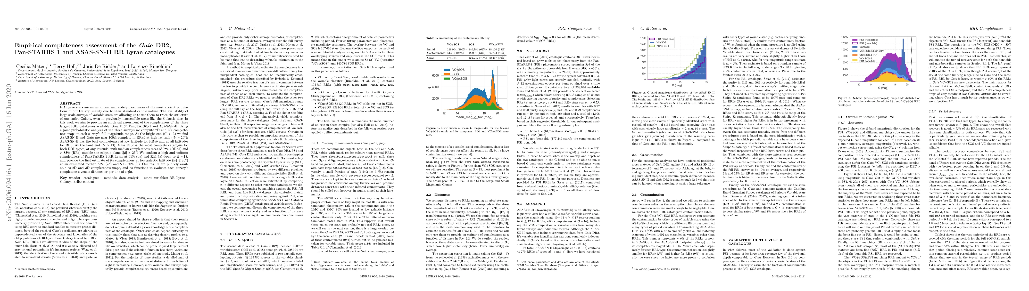 This paper assesses the empirical completeness of three major RR Lyrae catalogues: Gaia DR2, Pan-STARRS 1, and ASAS-SN-II. It finds that ASAS-SN-II and Gaia are nearly 100% complete for RRab stars at high latitudes, while Gaia DR2 is most complete for fainter RR Lyrae stars at any latitude. Pan-STARRS 1 shows high completeness down to G~18 but lower completeness at low galactic latitudes.